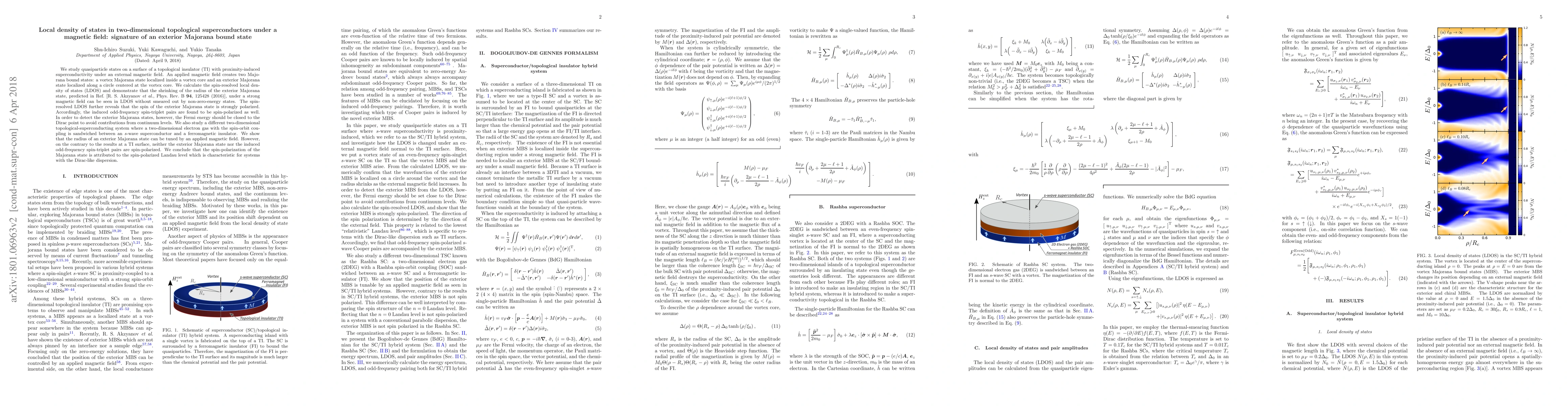 This paper investigates the local density of states (LDOS) in two-dimensional topological superconductors under a magnetic field, revealing the presence of an exterior Majorana bound state. The study shows that the exterior Majorana state's radius shrinks under strong magnetic fields, and its spin is strongly polarized, leading to spin-polarized odd-frequency spin-triplet pairs, detectable when the Fermi energy is near the Dirac point.