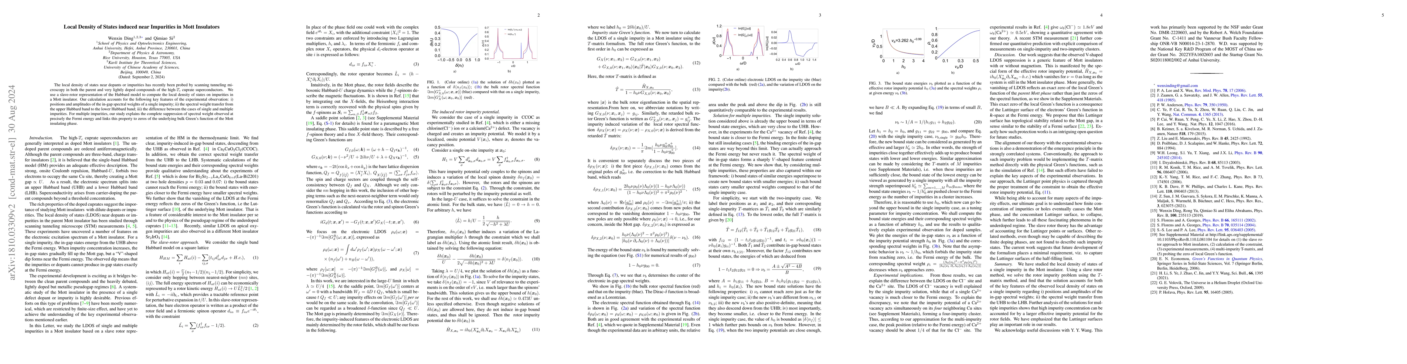 This paper investigates the local density of states near impurities in Mott insulators using scanning tunneling microscopy and slave-rotor calculations, explaining the observed spectral features, including in-gap states, spectral weight transfer, and the suppression of spectral weight at the Fermi energy due to multiple impurities.