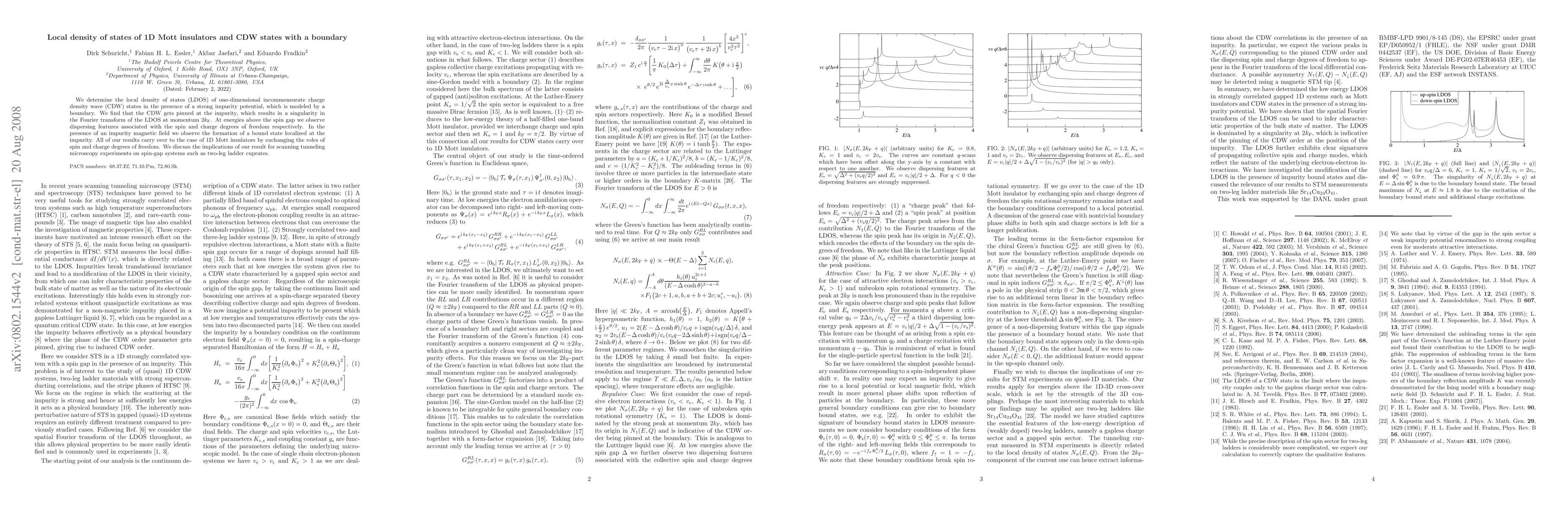 This paper investigates the local density of states (LDOS) in 1D incommensurate charge density wave (CDW) states near a boundary, finding CDW pinning and singularities at momentum 2k_F. It also observes dispersing features and bound states influenced by magnetic fields, with implications for scanning tunneling microscopy in spin-gap systems.