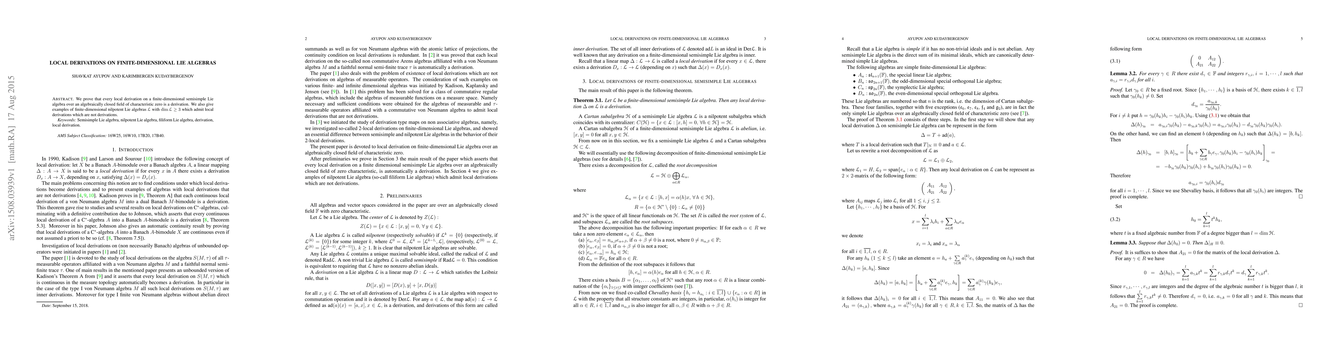 This paper proves that local derivations on finite-dimensional semisimple Lie algebras over an algebraically closed field of characteristic zero are actual derivations. It also provides examples of finite-dimensional nilpotent Lie algebras with dimension at least 3 that have local derivations which are not standard derivations.