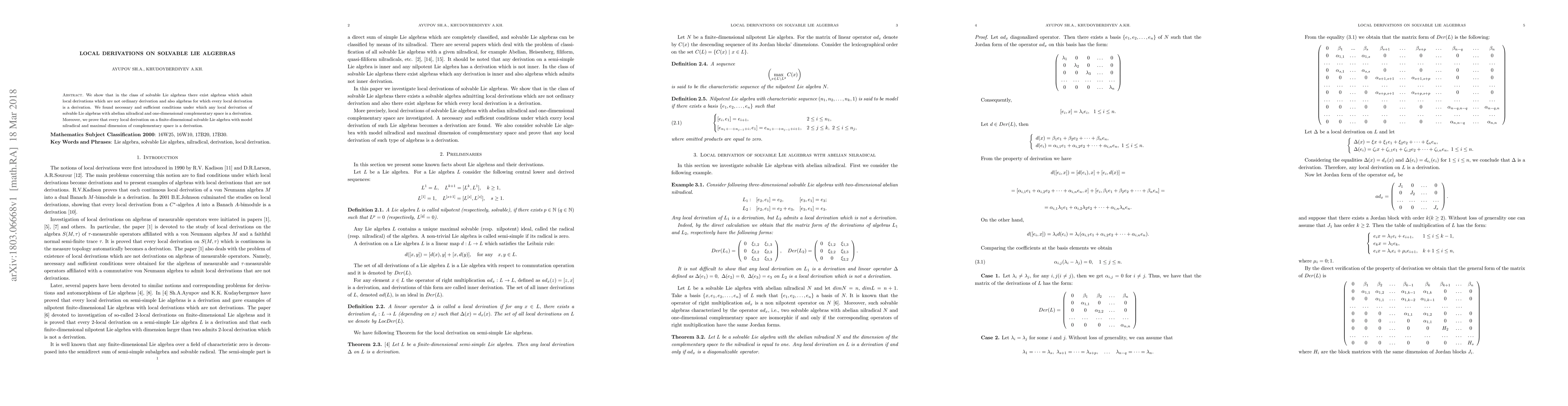 The research used a combination of algebraic and analytical techniques to investigate local derivations on solvable Lie algebras.