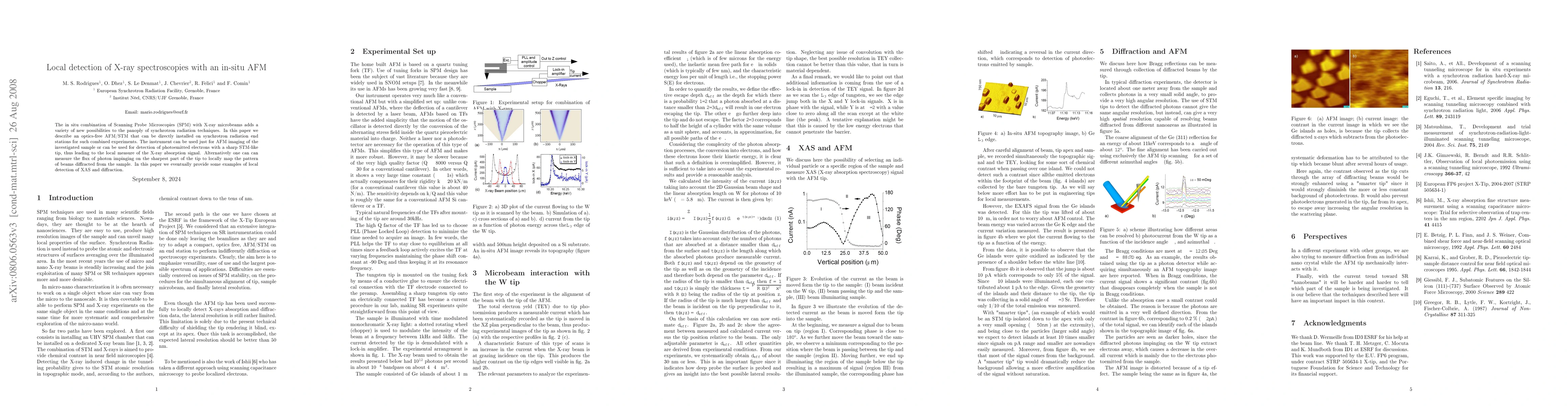 This paper introduces an optics-free AFM/STM setup for in-situ X-ray spectroscopies at synchrotron radiation facilities, enabling local detection of X-ray absorption and diffraction signals via photoemitted electron measurement or photon flux mapping. Examples of local X-ray absorption spectroscopy (XAS) and diffraction are provided.