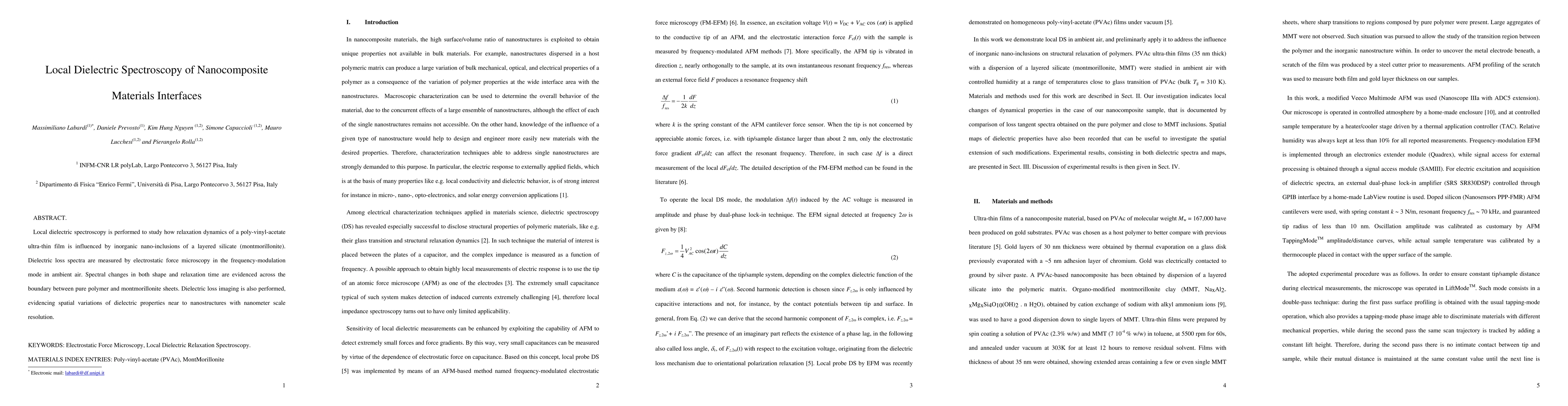 This study uses local dielectric spectroscopy to investigate the impact of inorganic nano-inclusions of montmorillonite on the relaxation dynamics of poly-vinyl-acetate films. The research reveals significant spectral changes in shape and relaxation time at the polymer-nanocomposite interface, with high-resolution dielectric loss imaging highlighting spatial variations in dielectric properties near nanostructures.