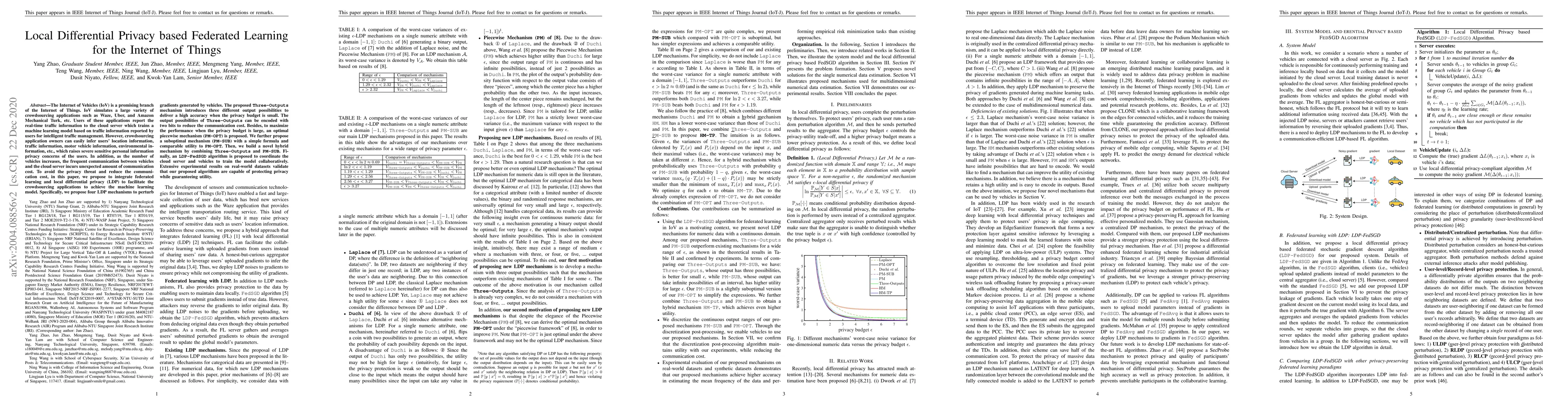 This paper proposes a federated learning framework integrating local differential privacy (LDP) to enhance privacy and reduce communication costs in Internet of Vehicles (IoV) applications. It introduces four LDP mechanisms, including a Three-Outputs mechanism and an optimal piecewise mechanism, to balance privacy and model accuracy.