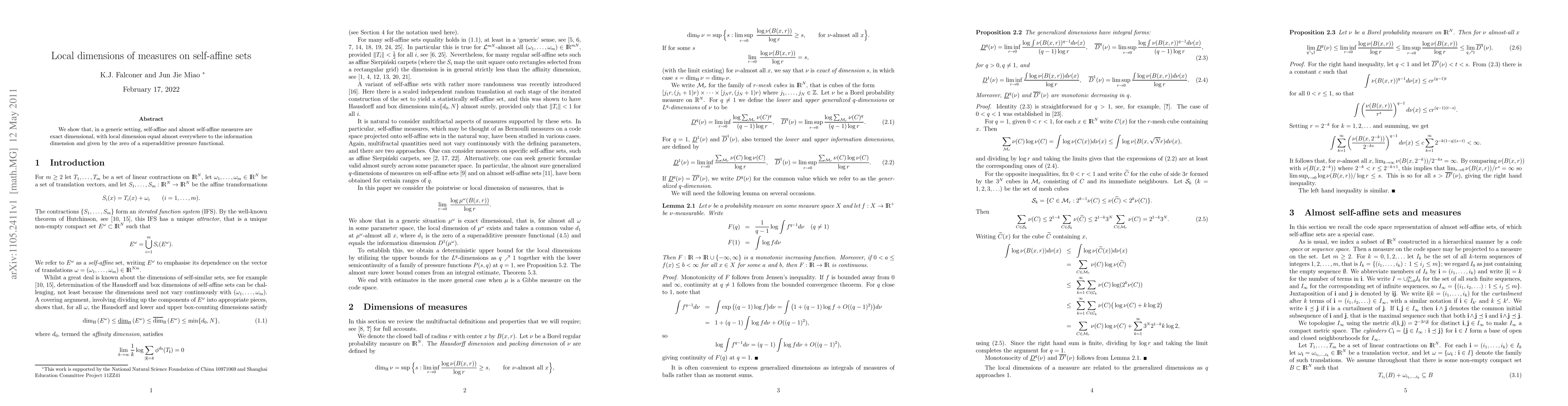 Summary: This paper demonstrates that self-affine and almost self-affine measures typically have exact dimensions, matching their information dimension almost everywhere, determined by the zero of a superadditive pressure functional.