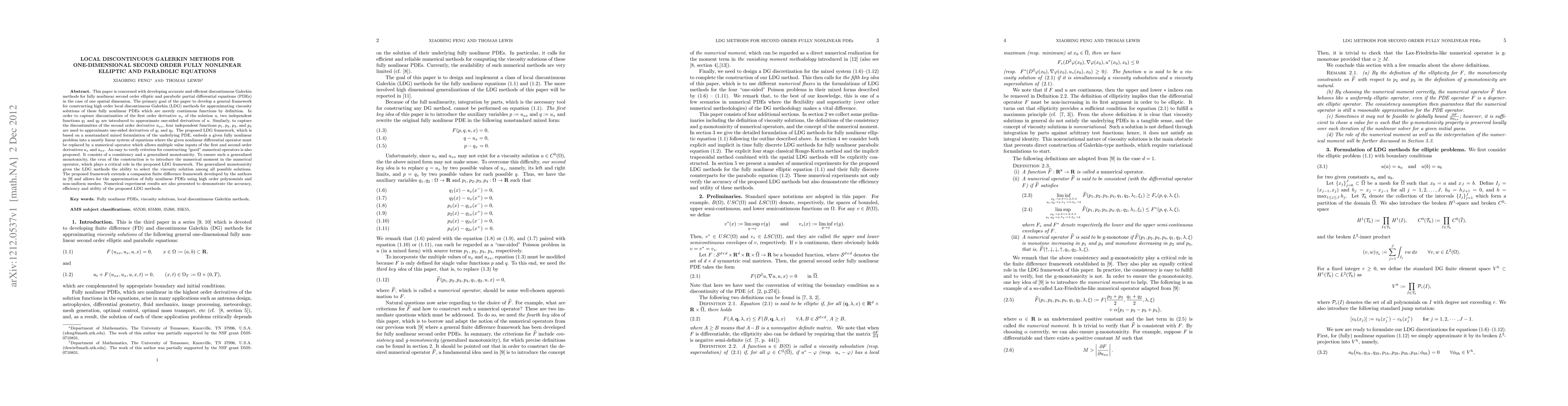 This paper develops a high-order local discontinuous Galerkin (LDG) method for approximating solutions to one-dimensional fully nonlinear elliptic and parabolic PDEs, introducing functions to capture discontinuities in first and second order derivatives and a criterion for constructing "good" numerical operators based on consistency and generalized monotonicity.