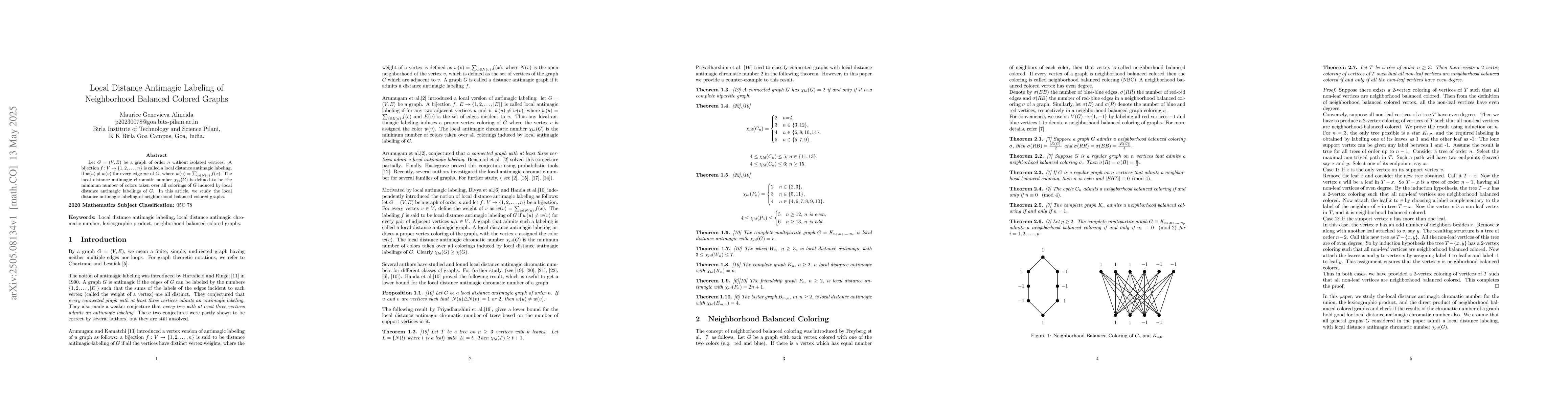 The research focuses on neighborhood balanced graphs and investigates local distance antimagic labelings, defining xld(G) as the minimum number of colors for such labelings.