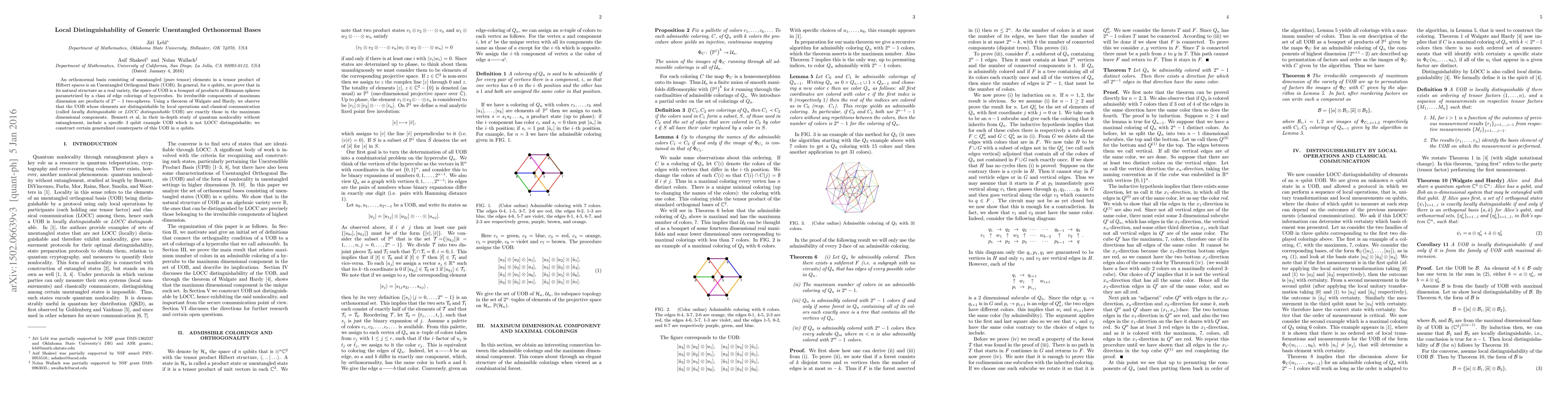 This paper proves that the space of Unentangled Orthogonal Bases (UOB) for $n$ qubits is a complex structure of Riemann spheres, with the most significant components being products of $2^n-1$ two-spheres. It concludes that only UOBs in these maximal components are locally distinguishable by operations and classical communication (LOCC).