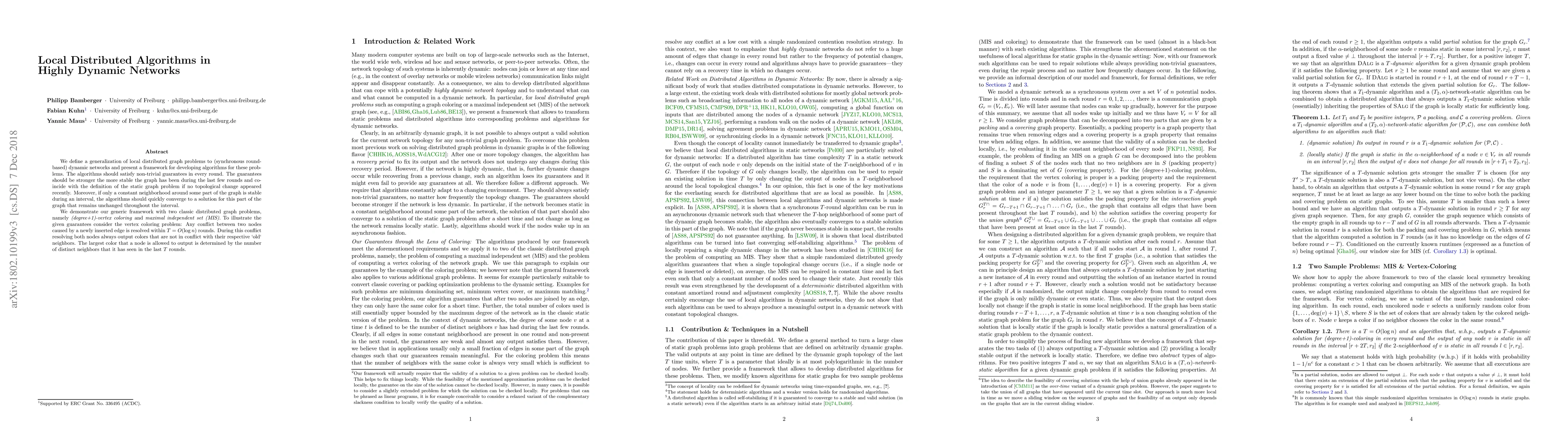 This paper explores local distributed algorithms for dynamic graph problems in highly changing networks, ensuring non-trivial guarantees in every round. It introduces a framework for $T$-dynamic solutions, where stability within a sliding window influences the strength of these guarantees, and demonstrates its application through degree+1-vertex coloring and maximal independent set problems.