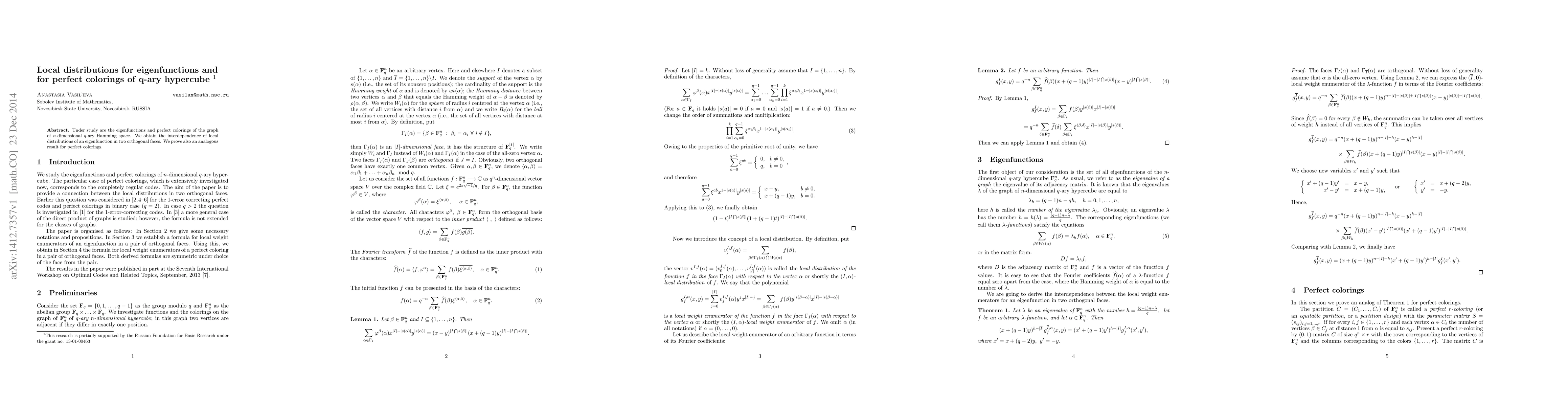 Summary: This paper investigates the local distributions of eigenfunctions and perfect colorings in the graph of $n$-dimensional $q$-ary Hamming space. It establishes the interdependence of eigenfunction distributions in orthogonal faces and proves a similar result for perfect colorings.
