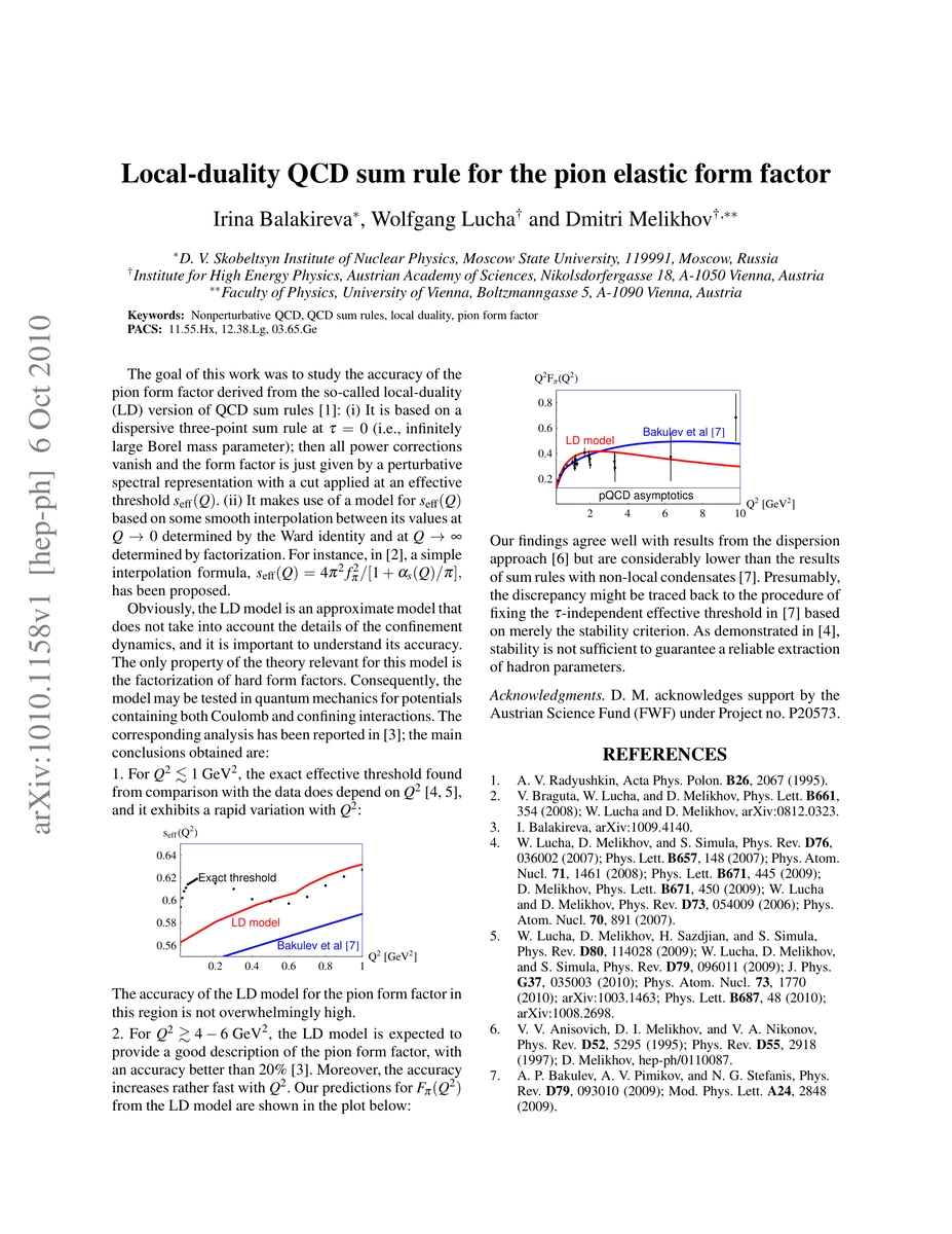 This work presents the results of our analysis of the accuracy of the pion form factor derived from the local-duality version of QCD sum rules.