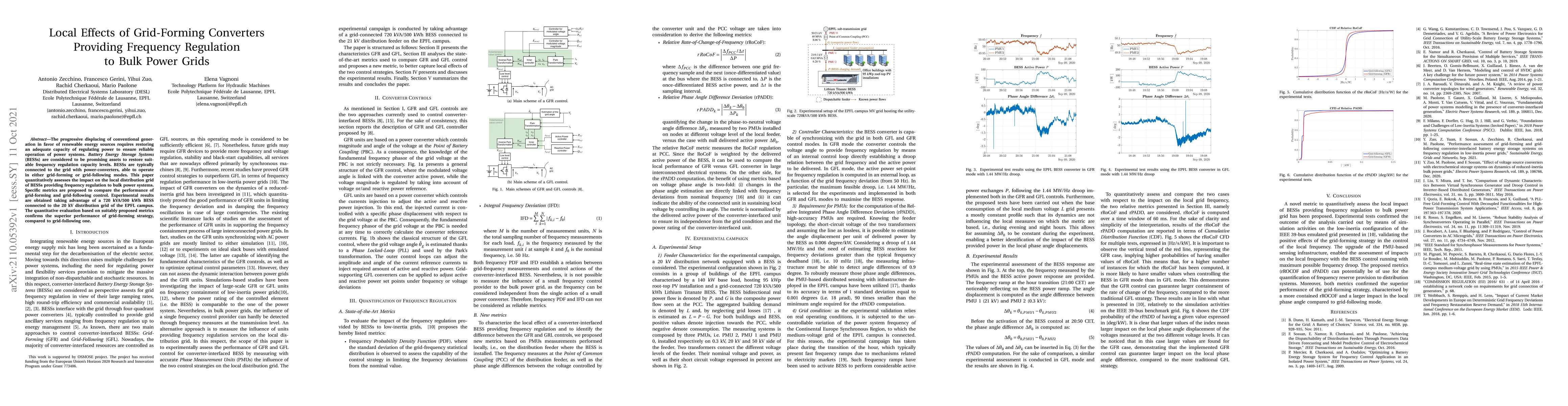 This paper evaluates the local effects of Battery Energy Storage Systems (BESSs) providing frequency regulation to bulk power grids, comparing grid-forming and grid-following control strategies. The study confirms the superior performance of grid-forming converters through experimental results on the EPFL campus distribution grid.
