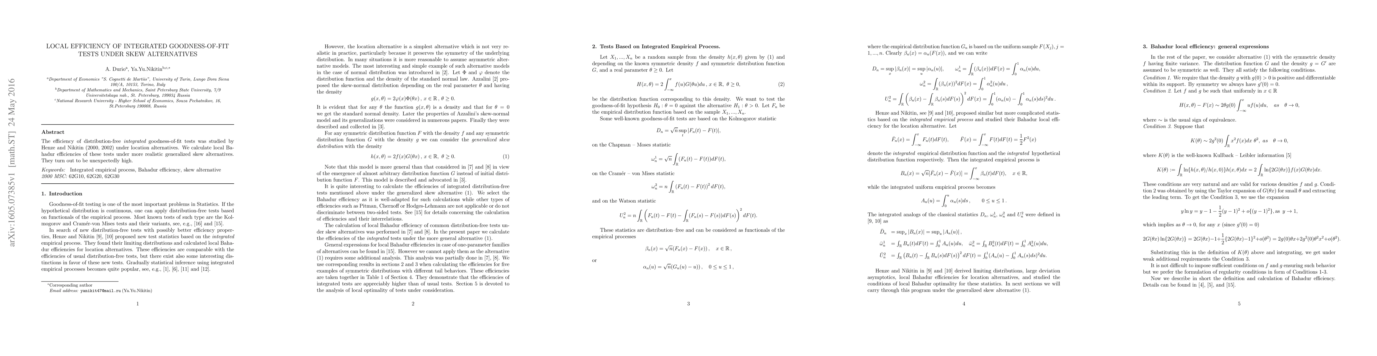Researchers found that distribution-free goodness-of-fit tests have unexpectedly high efficiency under generalized skew alternatives, which is a significant improvement over previous findings.