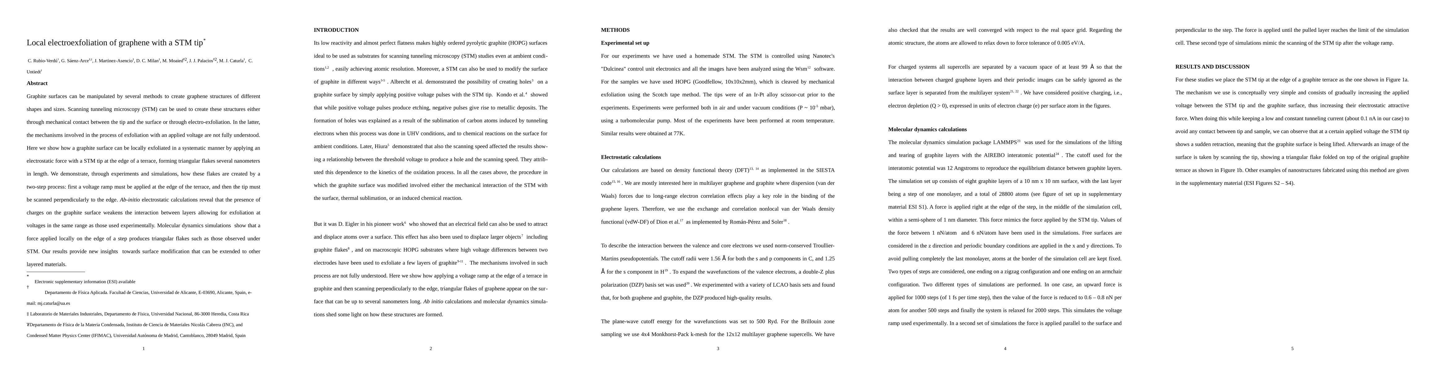 The paper presents a detailed understanding of the electroexfoliation process using STM tips, combining experimental evidence with ab-initio calculations and molecular dynamics simulations.