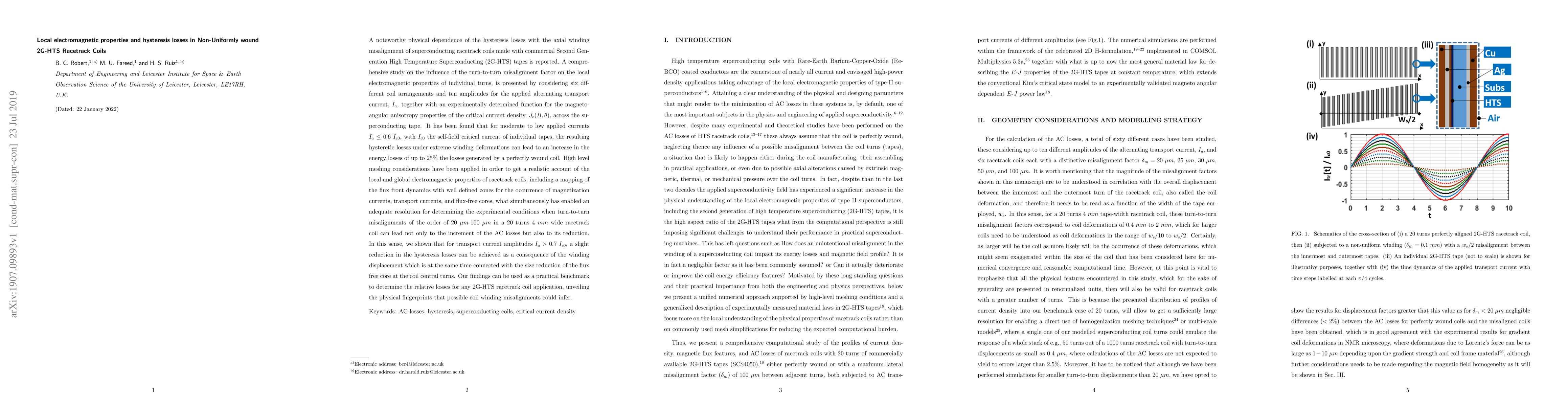 This paper investigates the impact of axial winding misalignment on hysteresis losses in non-uniformly wound 2G-HTS racetrack coils, revealing that misalignments can increase energy losses by up to 25% for moderate currents. The study uses high-level meshing to analyze the electromagnetic properties and provides a benchmark for assessing losses in similar applications.