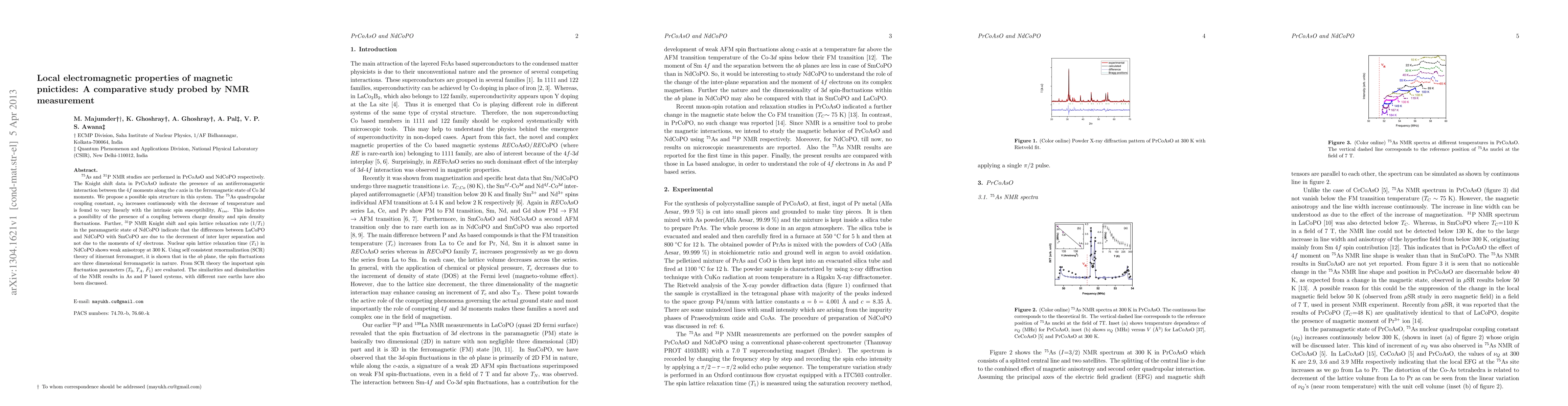 75As and 31P NMR studies are performed in PrCoAsO and NdCoPO respectively. The Knight shift data in PrCoAsO indicate the presence of an antiferromagnetic interaction between the 4f moments along the c axis in the ferromagnetic state of Co 3d moments. We propose a possible spin structure in this system. The 75As quadrupolar coupling constant, $\nu_Q$ increases continuously with the decrease of temperature and is found to vary linearly with the intrinsic spin susceptibility, Kiso. This indicates a possibility of the presence of a coupling between charge density and spin density fluctuations. Further, 31P NMR Knight shift and spin lattice relaxation rate (1/T1) in the paramagnetic state of NdCoPO indicate that the differences between LaCoPO and NdCoPO with SmCoPO are due to the decrement of inter layer separation and not due to the moments of 4f electrons. Nuclear spin lattice relaxation time (T1) in NdCoPO shows weak anisotropy at 300 K. Using self consistent renormalization (SCR)theory of itinerant ferromagnet, it is shown that in the ab plane, the spin fluctuations are three dimensional ferromagnetic in nature. From SCR theory the important spin fluctuation parameters ($T_0$, $T_A$, $\bar{F}_1$) are evaluated. The similarities and dissimilarities of the NMR results in As and P based systems, with different rare earths have also been discussed.