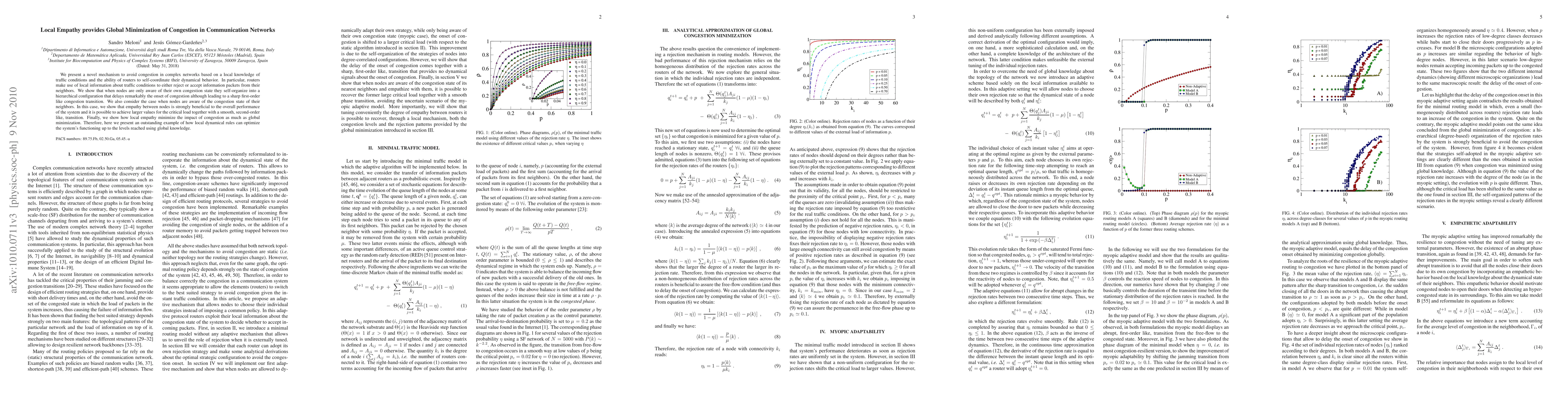 We present a novel mechanism to avoid congestion in complex networks based on local knowledge of traffic conditions and the ability of routers to self-coordinate their dynamical behavior. In particular, routers make use of local information about traffic conditions to either reject or accept information packets from their neighbors. We show that when nodes are only aware of their own congestion state they self-organize into a hierarchical configuration that delays remarkably the onset of congestion although, leading to a sharp first-order like congestion transition. We also consider the case when nodes are aware of the congestion state of their neighbors. In this case, we show that empathy between nodes is strongly beneficial to the overall performance of the system and it is possible to achieve larger values for the critical load together with a smooth, second-order like, transition. Finally, we show how local empathy minimize the impact of congestion as much as global minimization. Therefore, here we present an outstanding example of how local dynamical rules can optimize the system's functioning up to the levels reached using global knowledge.