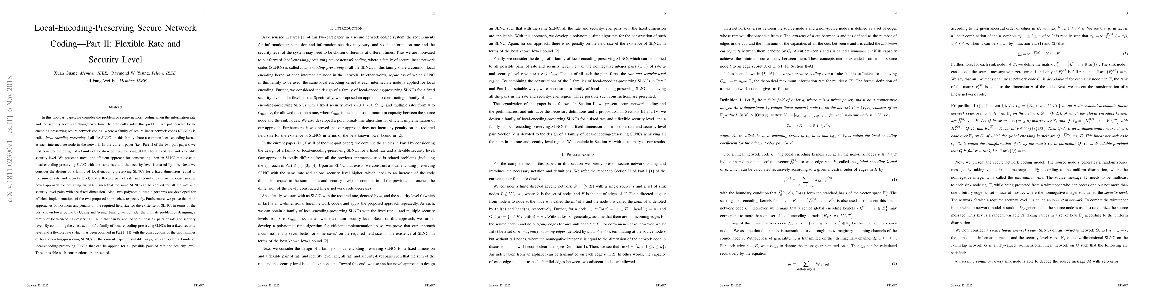 In the two-part paper, we consider the problem of secure network coding when the information rate and the security level can change over time. To efficiently solve this problem, we put forward local-encoding-preserving secure network coding, where a family of secure linear network codes (SLNCs) is called local-encoding-preserving (LEP) if all the SLNCs in this family share a common local encoding kernel at each intermediate node in the network. In this paper (Part II), we first consider the design of a family of LEP SLNCs for a fixed rate and a flexible security level. We present a novel and efficient approach for constructing upon an SLNC that exists an LEP SLNC with the same rate and the security level increased by one. Next, we consider the design of a family of LEP SLNCs for a fixed dimension (equal to the sum of rate and security level) and a flexible pair of rate and security level. We propose another novel approach for designing an SLNC such that the same SLNC can be applied for all the rate and security-level pairs with the fixed dimension. Also, two polynomial-time algorithms are developed for efficient implementations of our two approaches, respectively. Furthermore, we prove that both approaches do not incur any penalty on the required field size for the existence of SLNCs in terms of the best known lower bound by Guang and Yeung. Finally, we consider the ultimate problem of designing a family of LEP SLNCs that can be applied to all possible pairs of rate and security level. By combining the construction of a family of LEP SLNCs for a fixed security level and a flexible rate (obtained in Part I) with the constructions of the two families of LEP SLNCs in the current paper in suitable ways, we can obtain a family of LEP SLNCs that can be applied for all possible pairs of rate and security level. Three possible such constructions are presented.