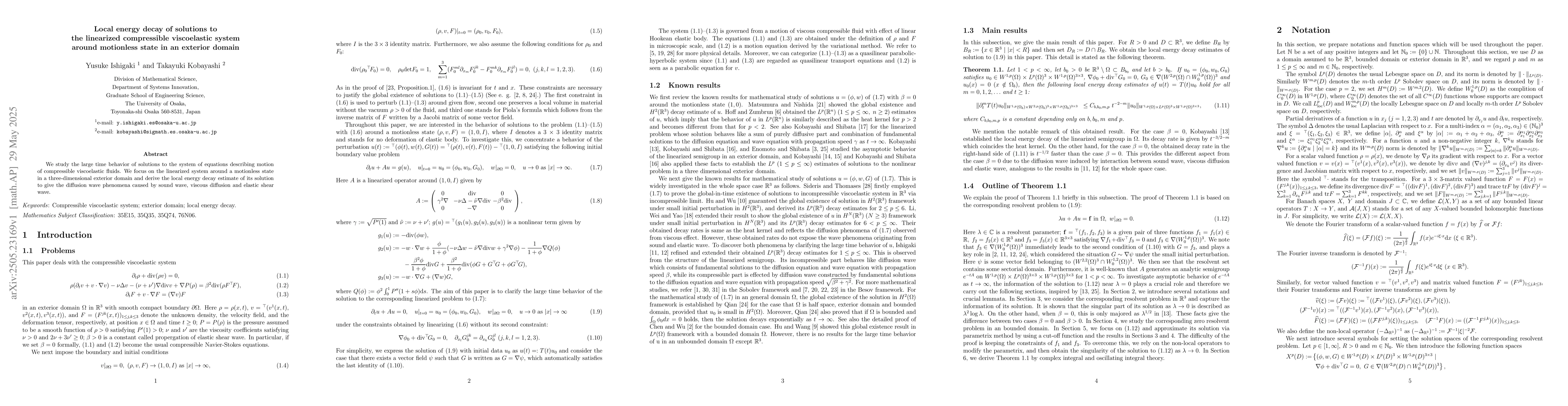 The research employs a combination of analytical techniques and numerical simulations to study the large time behavior of solutions to the linearized compressible viscoelastic system in an exterior domain, focusing on diffusion wave phenomena caused by sound wave viscous diffusion and elastic shear wave.