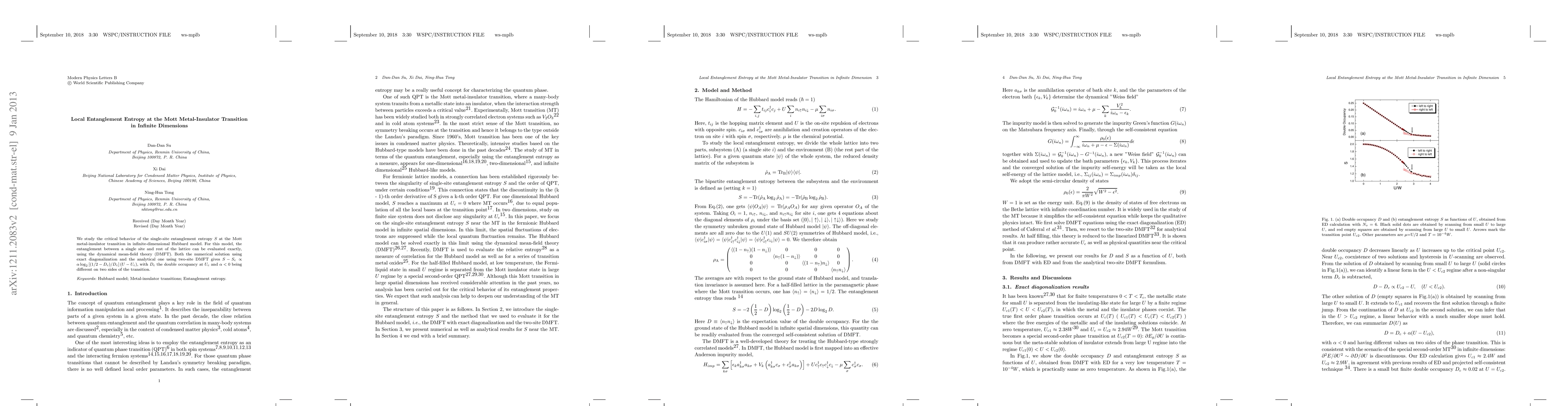 This paper investigates the critical behavior of single-site entanglement entropy at the Mott metal-insulator transition in infinite-dimensional Hubbard models using DMFT. It finds that the difference between entanglement entropy and critical entropy scales logarithmically with the interaction strength, differing in sign on either side of the transition.