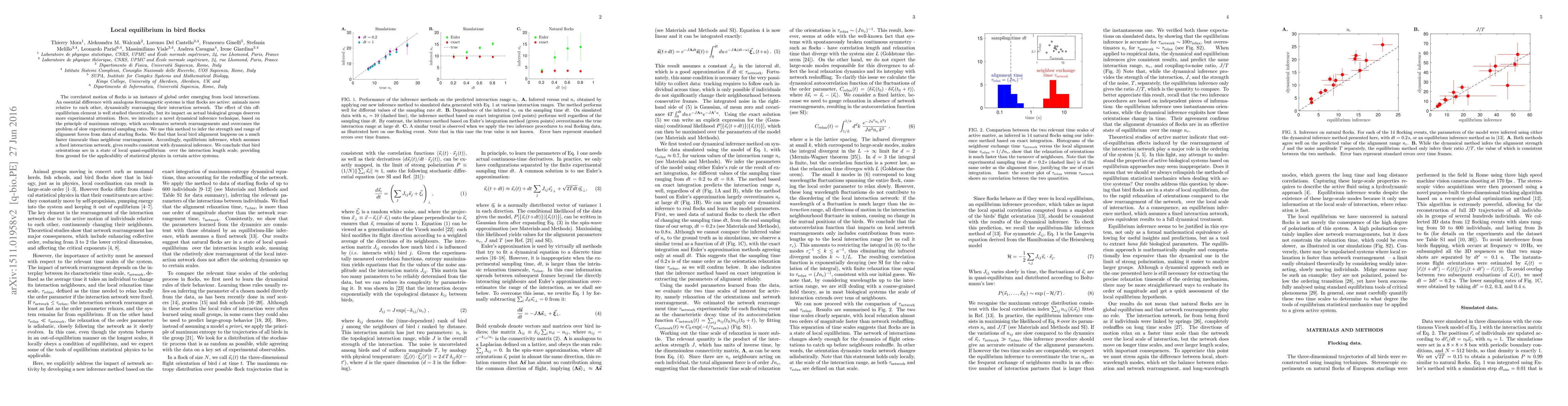The study employs a maximum entropy-based technique to analyze starling flocks, revealing that local bird alignment occurs faster than neighbor rearrangement, supporting the notion of local quasi-equilibrium in flocks despite active dynamics. This suggests the applicability of statistical physics to active biological systems.