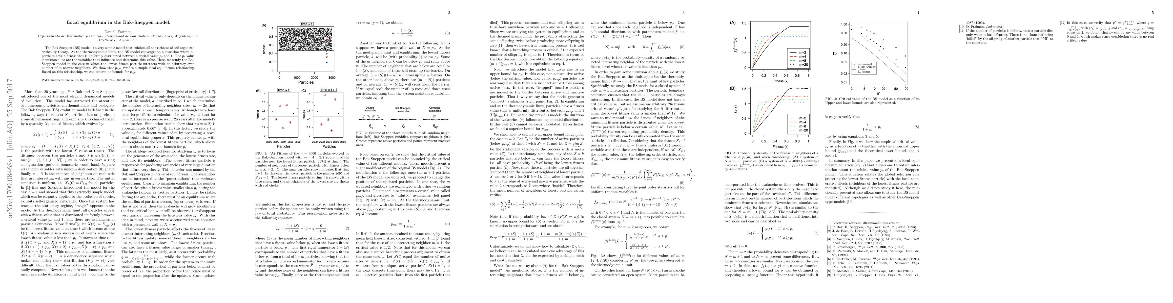 The research paper investigates the Bak-Sneppen model, a simple model that exhibits self-organized criticality, and finds a local equilibrium relationship for the lowest fitness particle interacting with an arbitrary even number of nearest neighbors, providing bounds for the critical fitness value.
