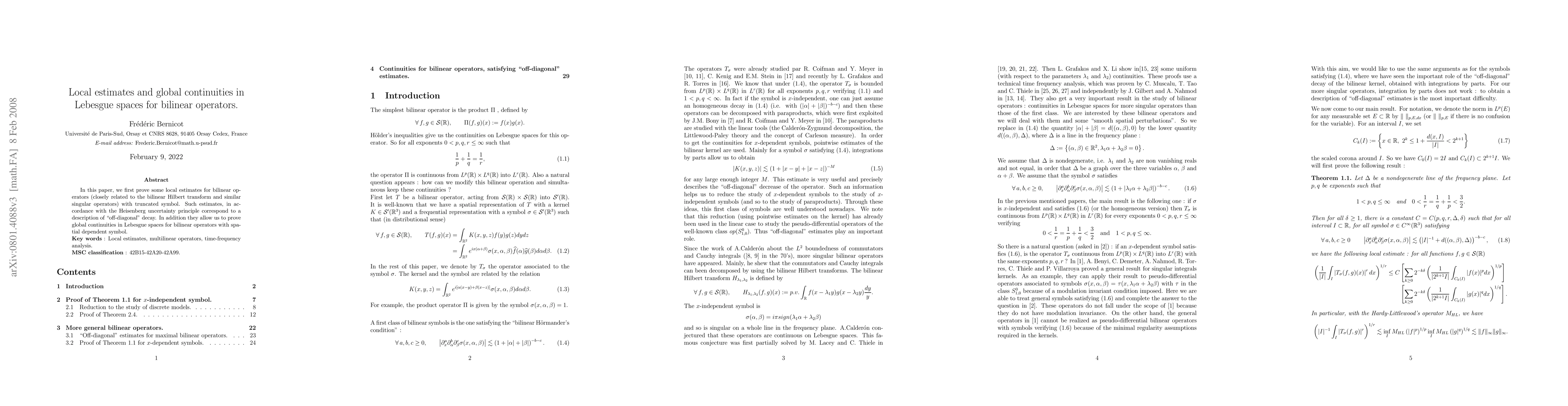 This paper establishes local estimates for bilinear operators with truncated symbols, demonstrating "off-diagonal" decay, and uses these estimates to prove global continuities in Lebesgue spaces for bilinear operators with spatially dependent symbols.