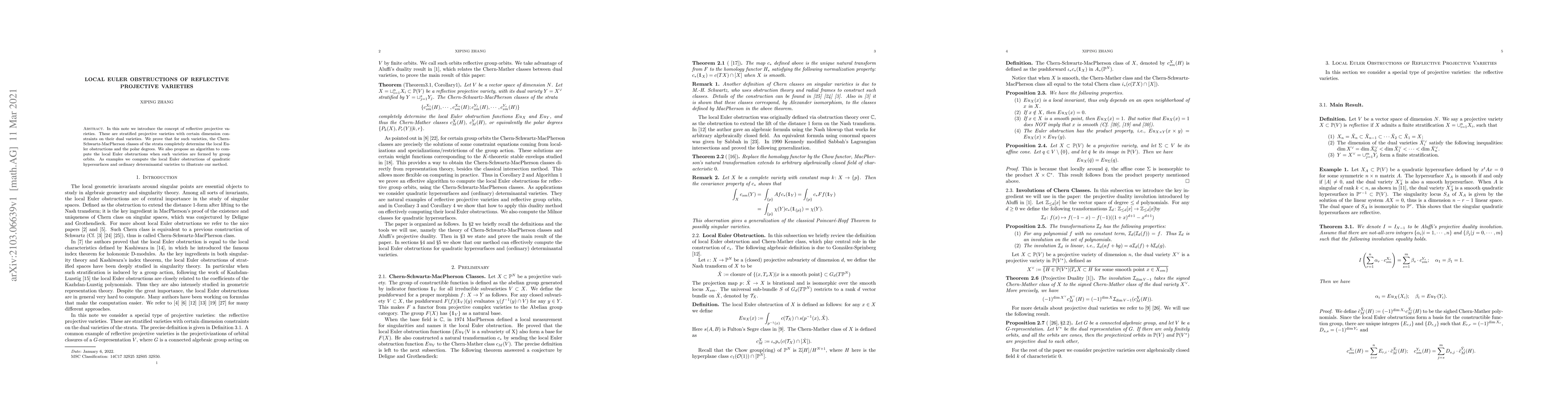 This paper introduces reflective projective varieties and demonstrates that their Chern-Schwartz-MacPherson classes determine their local Euler obstructions and polar degrees. An algorithm is proposed for computing these obstructions for group orbit varieties, with examples including quadratic hypersurfaces and determinantal varieties.