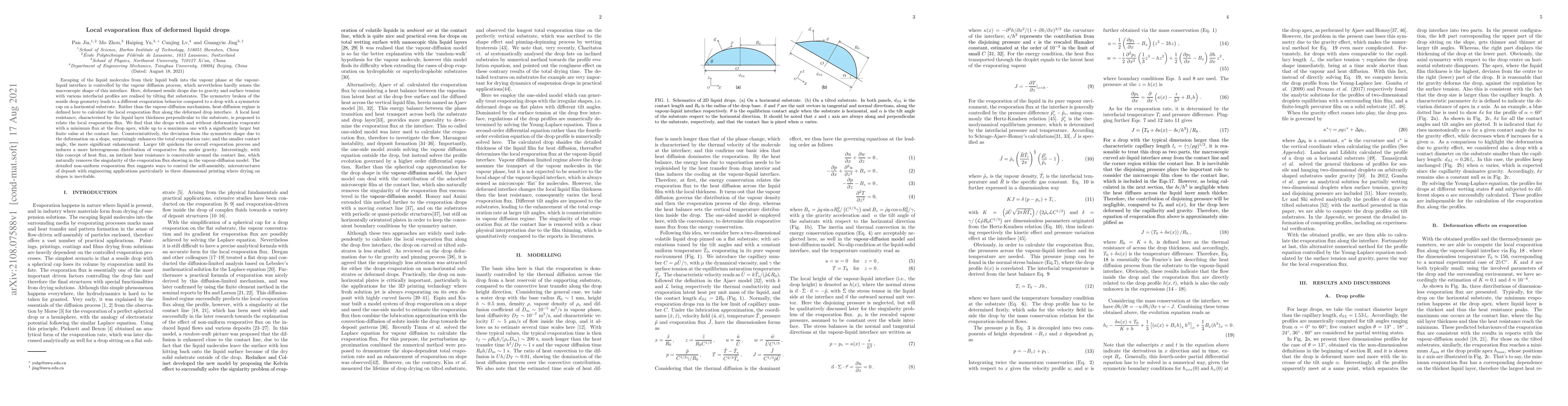 This paper investigates how the evaporation flux of deformed liquid drops varies along their interface when tilted, highlighting that deformation enhances total evaporation rate due to a heat-diffusion regime rather than vapour diffusion. It finds that a local heat resistance correlates with the evaporation flux and suggests that the non-uniform evaporation flux has engineering applications, particularly in three-dimensional printing on slopes.
