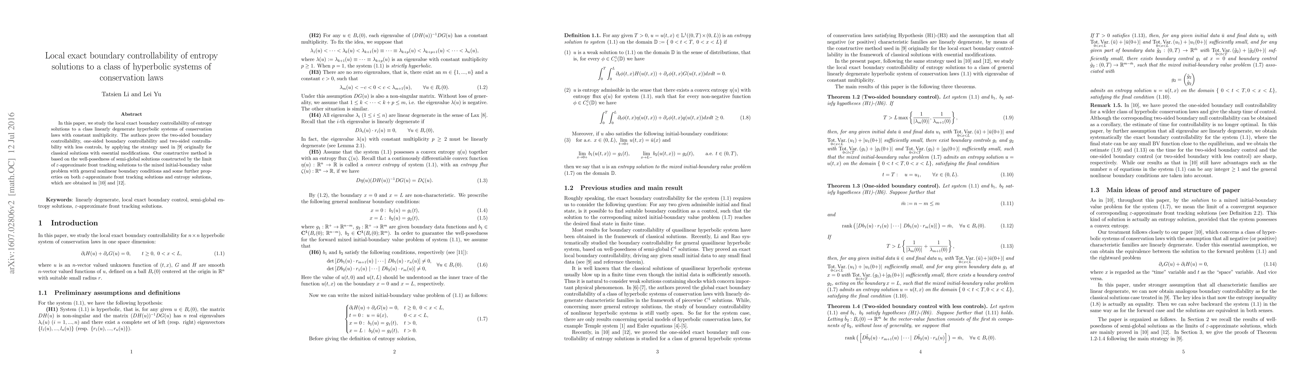 This paper investigates local exact boundary controllability for entropy solutions of linearly degenerate hyperbolic systems of conservation laws. The authors prove two-sided and one-sided boundary controllability using modified strategies from classical solutions, based on the well-posedness of semi-global solutions derived from $ \e $-approximate front tracking.