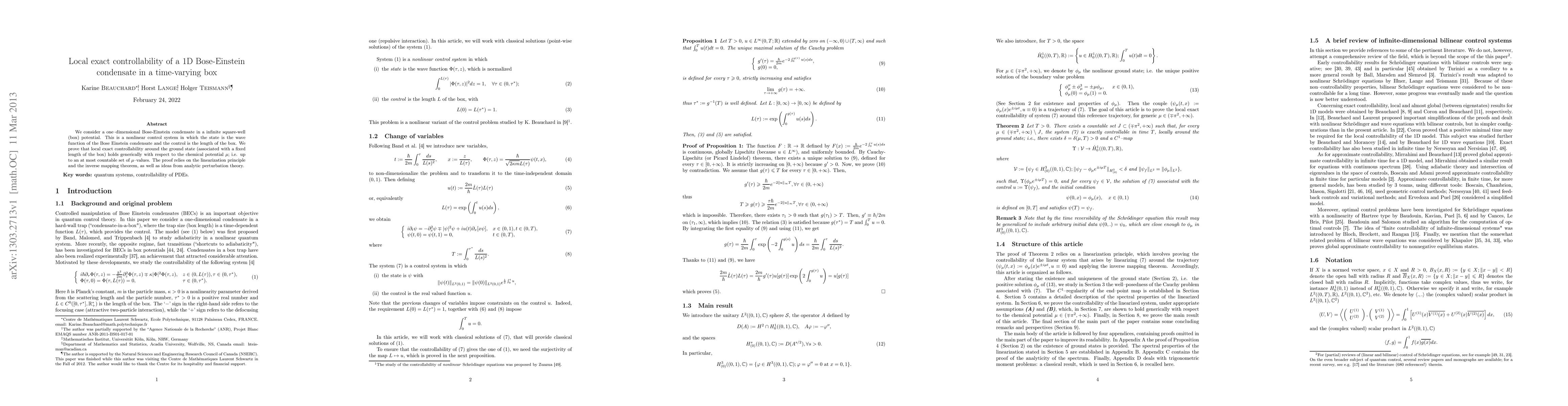 This study is significant for understanding the control of quantum systems, particularly Bose-Einstein condensates, which have applications in quantum computing and precision measurement.