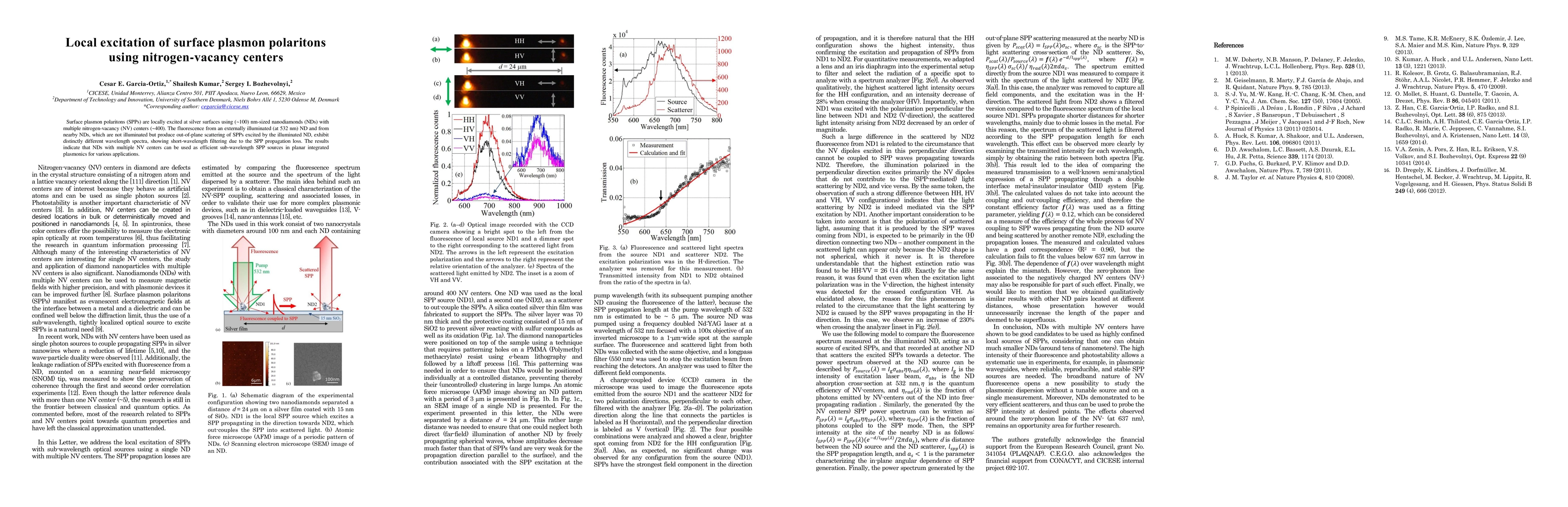 Researchers used nanodiamonds with nitrogen-vacancy centers to locally excite surface plasmon polaritons on silver surfaces, showing potential for efficient sub-wavelength SPP sources in planar integrated plasmonics.