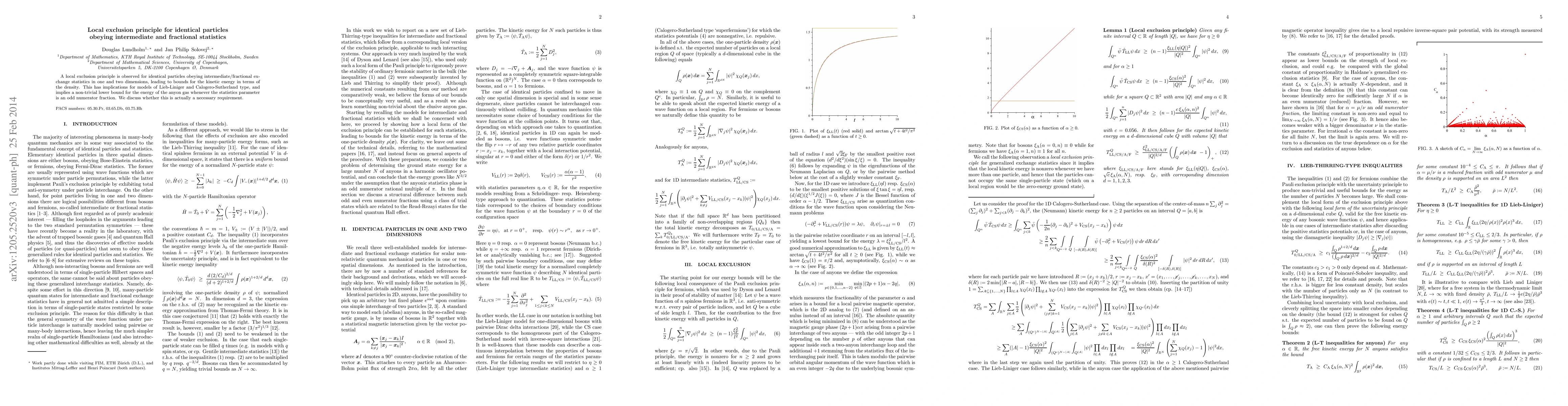 A local exclusion principle is observed for identical particles obeying intermediate/fractional exchange statistics in one and two dimensions, leading to bounds for the kinetic energy in terms of the density. This has implications for models of Lieb-Liniger and Calogero-Sutherland type, and implies a non-trivial lower bound for the energy of the anyon gas whenever the statistics parameter is an odd numerator fraction. We discuss whether this is actually a necessary requirement.