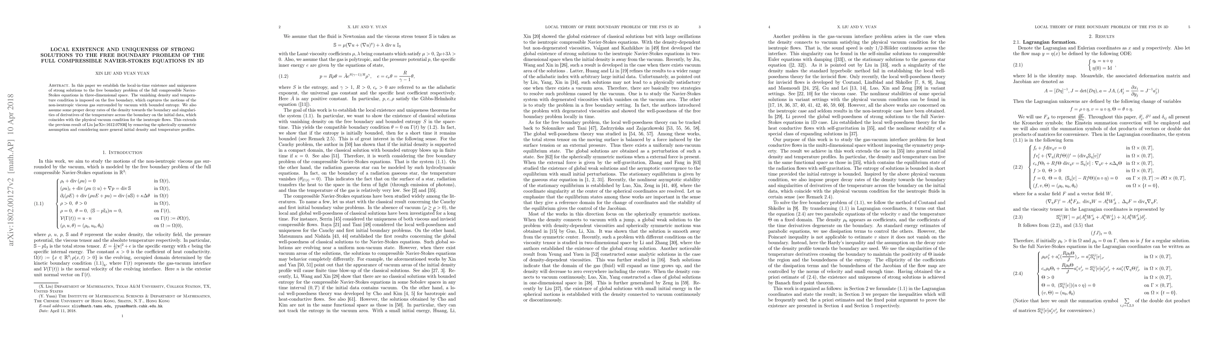 This paper establishes local-in-time existence and uniqueness of strong solutions for the free boundary problem of the full compressible Navier-Stokes equations in 3D, without the spherically symmetric assumption, and with specific decay conditions on density and temperature. This extends previous results by considering more general initial profiles.