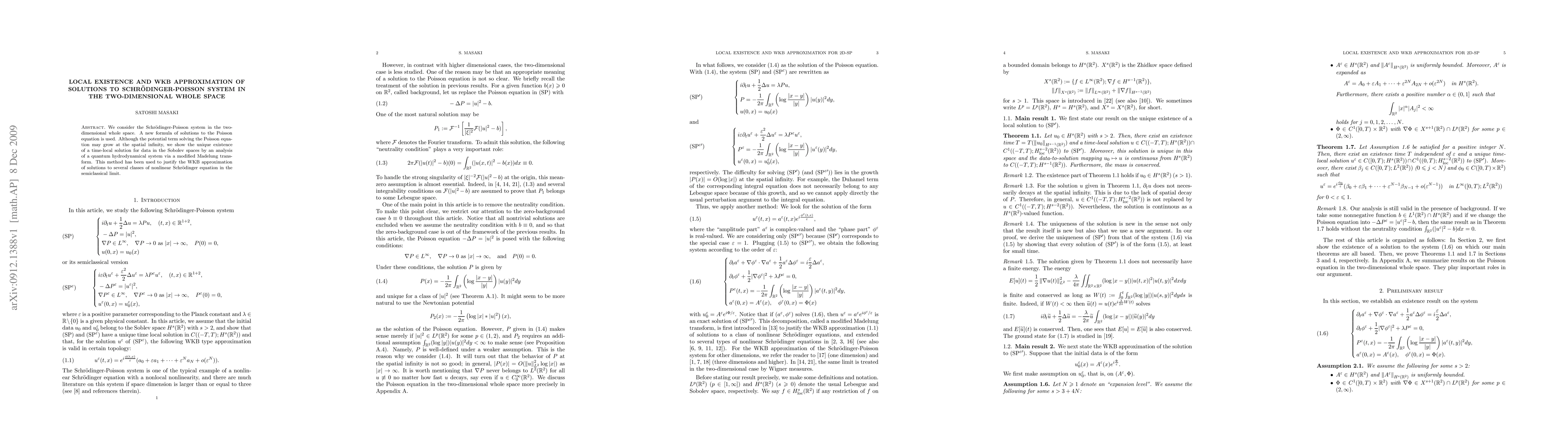 This paper establishes the local existence of time-local solutions for the Schrödinger-Poisson system in two-dimensional space using a novel Poisson equation solution formula and a modified Madelung transform. It also justifies the WKB approximation for solutions in the semiclassical limit.