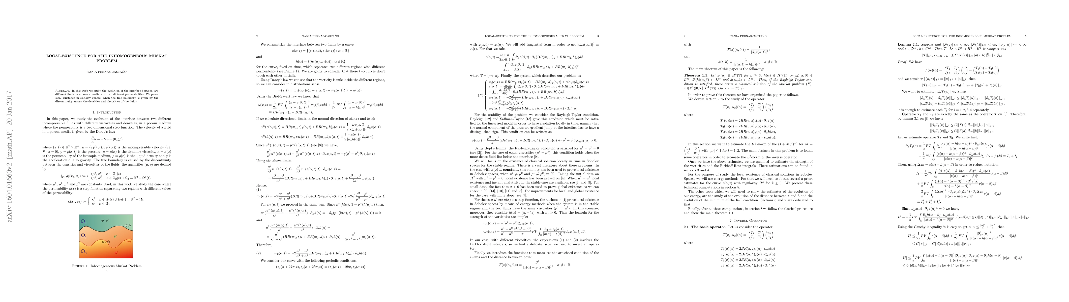 Researchers prove local existence of interface evolution between two fluids in porous media with different permeabilities, focusing on the role of density and viscosity discontinuities.