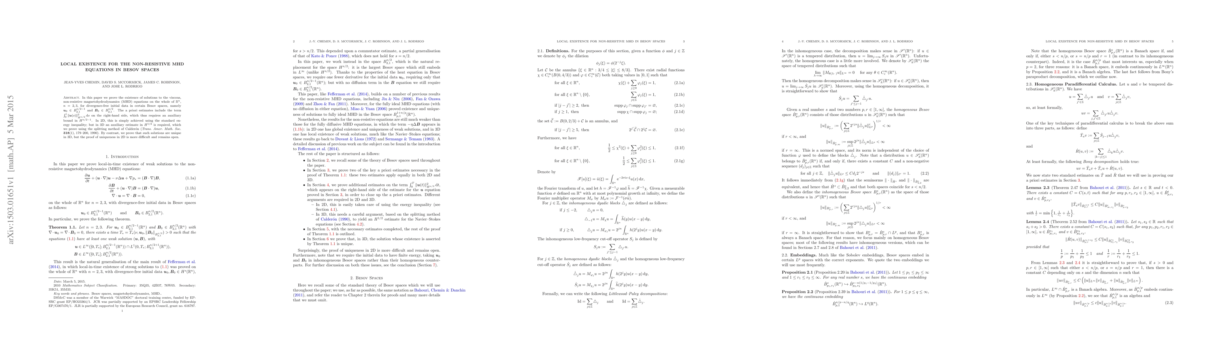 Researchers proved the existence of solutions to non-resistive MHD equations in certain Besov spaces, providing new insights into the dynamics of magnetic fields and fluids.