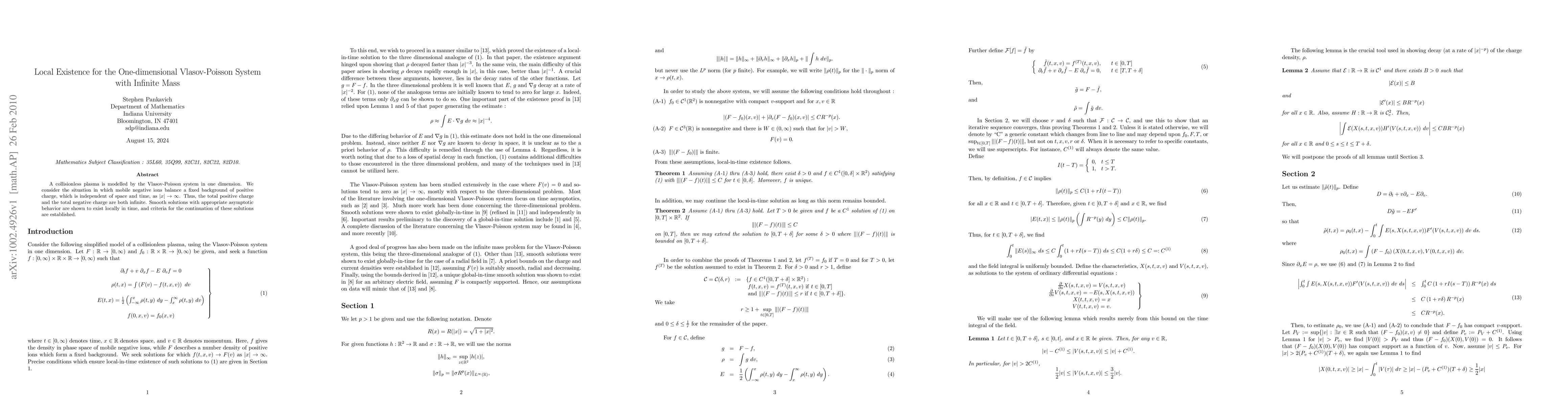 Researchers show that solutions to a mathematical model of a plasma system can exist locally in time even when the total positive and negative charges are infinite. This discovery has implications for understanding behavior of plasmas in extreme conditions.