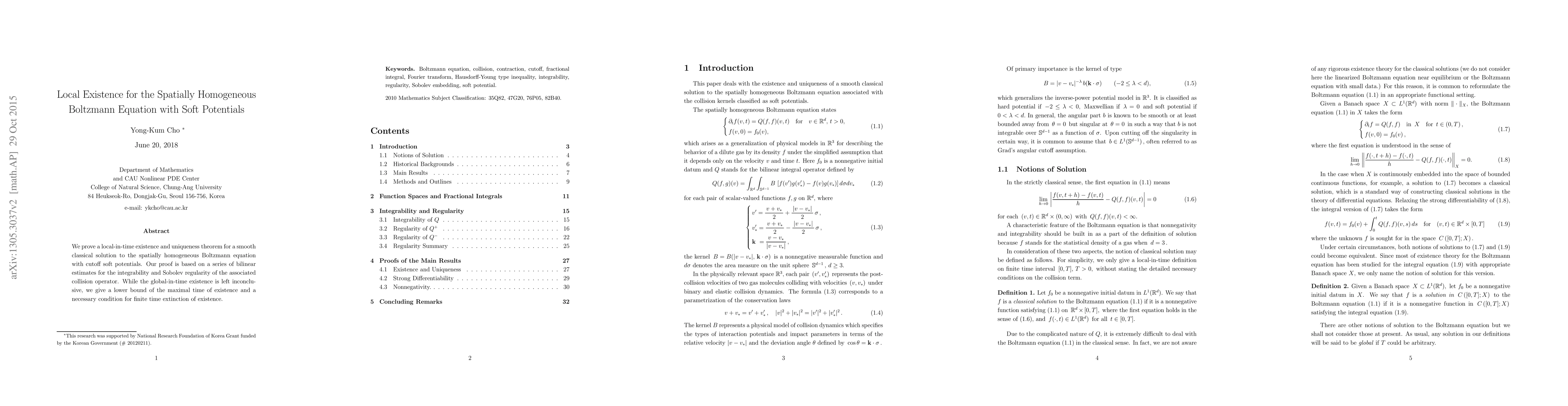 Summary: This paper proves local-in-time existence and uniqueness for smooth solutions to the spatially homogeneous Boltzmann equation with cutoff soft potentials, using bilinear estimates for collision operator properties. It also provides a lower bound for the maximal existence time and conditions for finite time extinction.