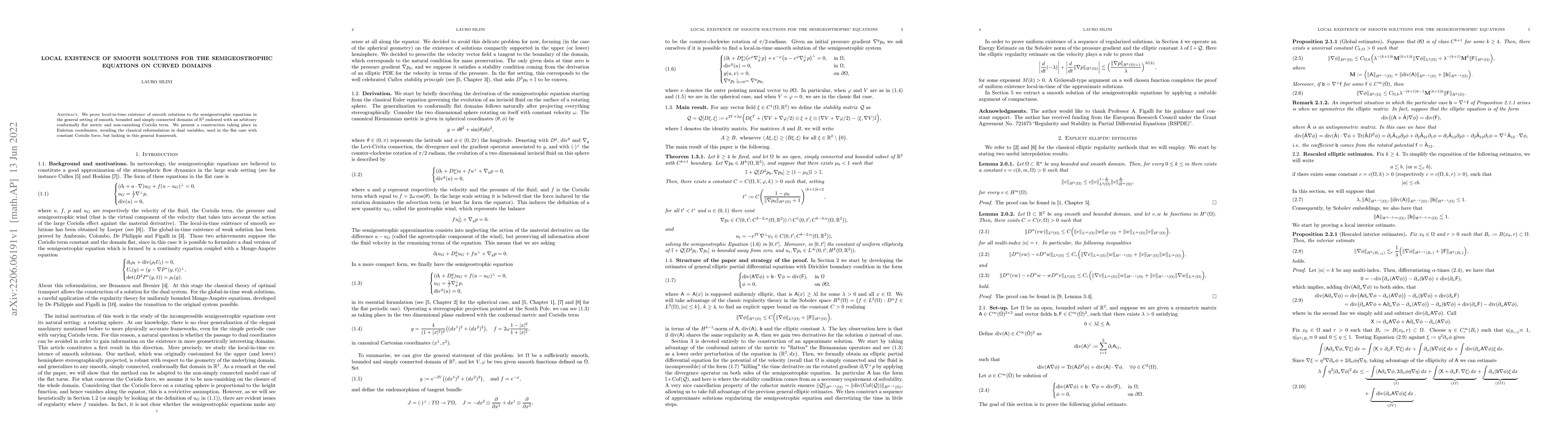 This research proves local-in-time existence of smooth solutions for semigeostrophic equations on curved domains, utilizing Eulerian coordinates and avoiding the traditional dual variable reformulation. The study covers smooth, bounded, and simply connected 2D domains with arbitrary conformally flat metrics and non-zero Coriolis terms.