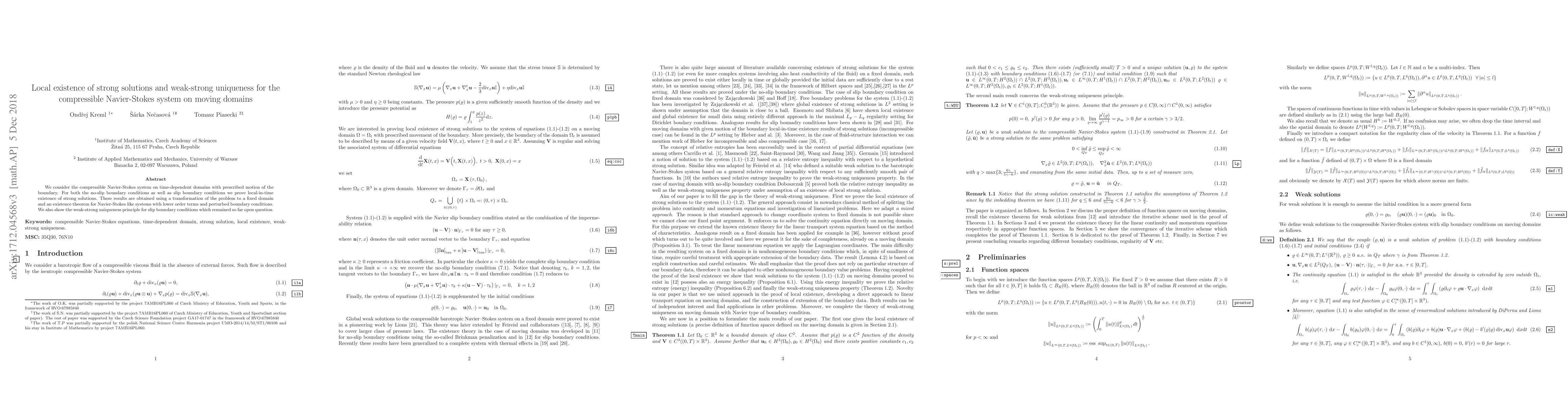 This paper proves local-in-time existence of strong solutions for the compressible Navier-Stokes system on moving domains under no-slip and slip boundary conditions, and establishes the weak-strong uniqueness principle for slip conditions. The results utilize a transformation to a fixed domain and an existence theorem for perturbed boundary conditions.