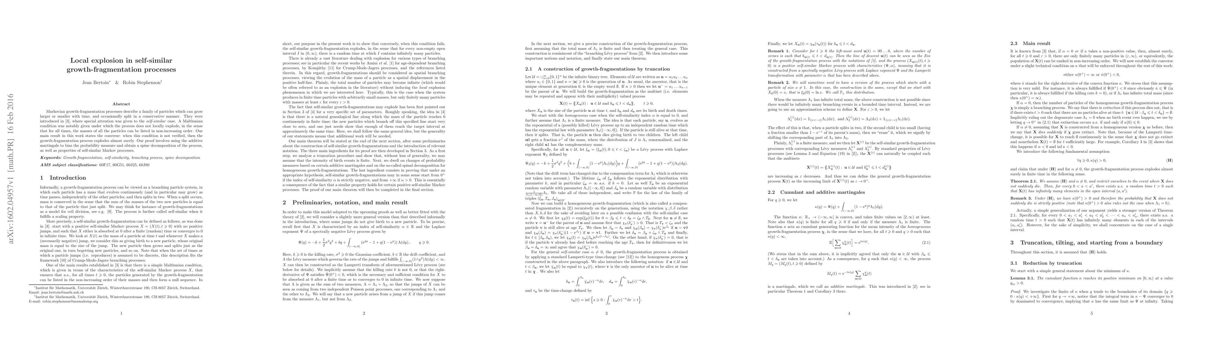 This paper investigates Markovian growth-fragmentation processes, proving that when a Malthusian condition is not met, the process will almost surely explode locally. The proof utilizes additive martingales and properties of self-similar Markov processes to achieve a spine decomposition.