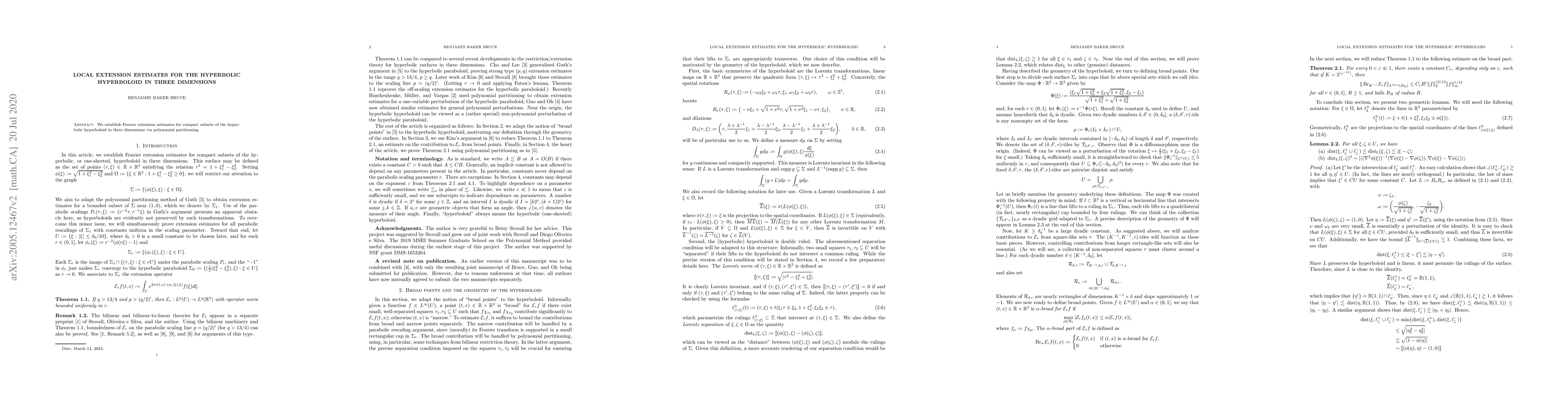 We establish Fourier extension estimates for compact subsets of the hyperbolic hyperboloid in three dimensions via polynomial partitioning.