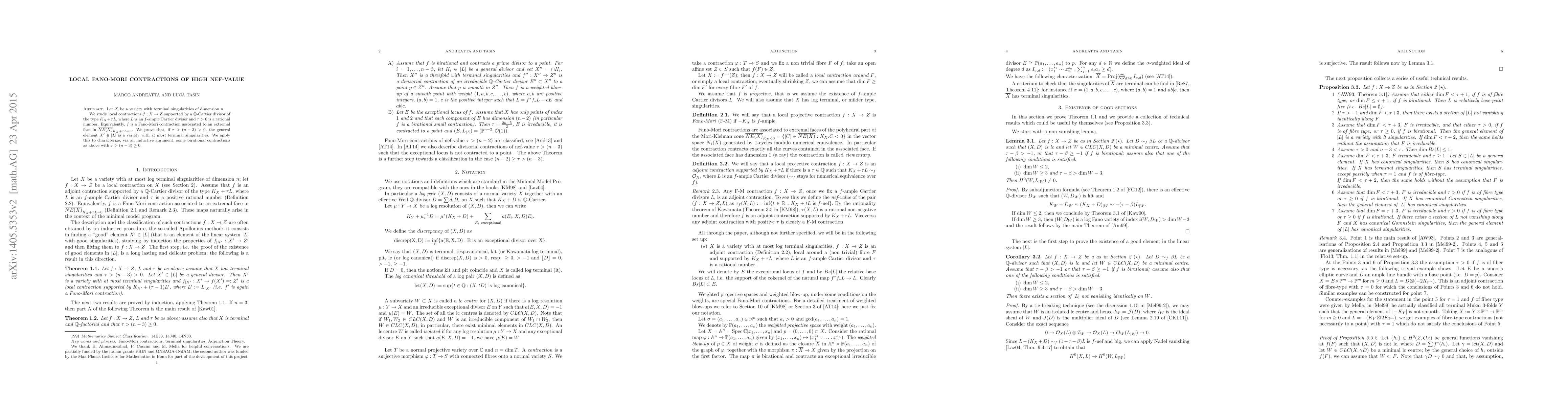 Let $X$ be a variety with at most terminal $\mathbb Q$-factorial singularities of dimension $n$. We study local contractions $f:X\to Z$ supported by a $\mathbb Q$-Cartier divisor of the type $K_X+ \tau L$, where $L$ is an $f$-ample Cartier divisor and $\tau \geq 0$ is a rational number. Equivalently, $f$ is a Fano-Mori contraction associated to an extremal face in $\overline {NE(X)}_{K_X+\tau L = 0}$; these maps naturally arise in the context of the minimal model program. We prove that, if $\tau > (n-3) >0$, the general element $X' \in |L|$ is a variety with at most terminal singularities. Then we apply this to characterize, via an inductive argument, some birational contractions as above with $\tau > (n-3)\geq 0$.