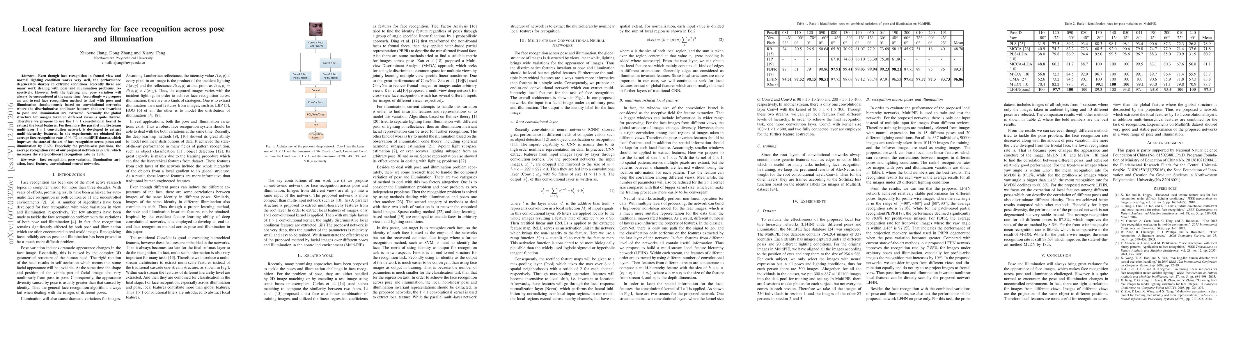 This paper proposes an end-to-end convolutional network for face recognition that simultaneously addresses pose and illumination variations, achieving a 96.9% recognition rate on the multiPIE dataset, improving the state-of-the-art by 7.5%. The method uses 1*1 convolutional kernels and a multi-stream network to extract invariant local features.