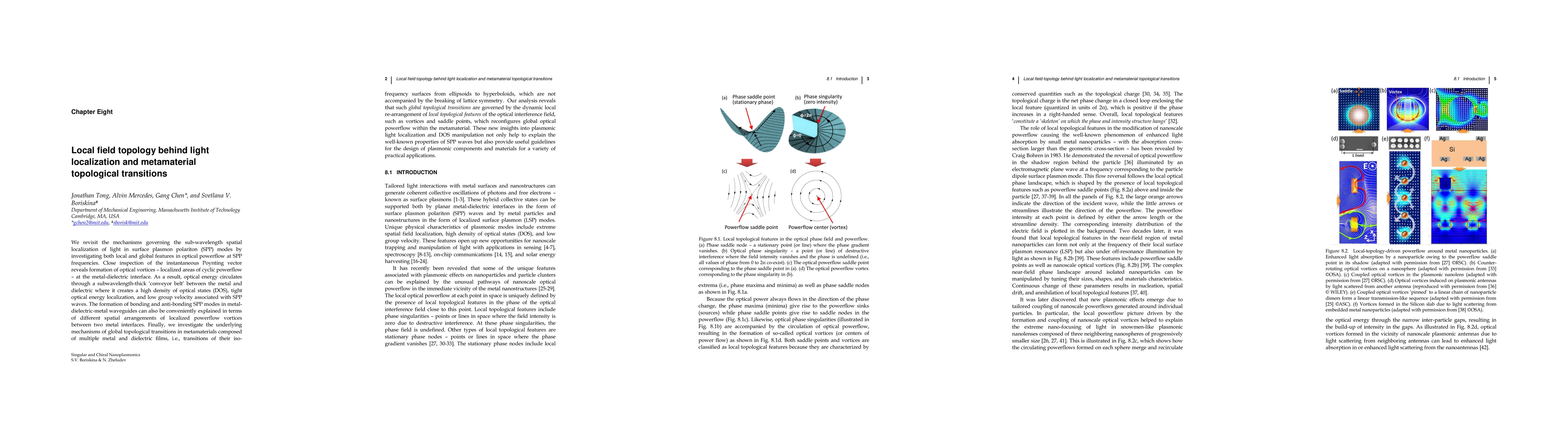 We revisit the mechanisms governing the sub-wavelength spatial localization of light in surface plasmon polariton (SPP) modes by investigating both local and global features in optical powerflow at SPP frequencies. Close inspection of the instantaneous Poynting vector reveals formation of optical vortices - localized areas of cyclic powerflow - at the metal-dielectric interface. As a result, optical energy circulates through a subwavelength-thick 'conveyor belt' between the metal and dielectric where it creates a high density of optical states (DOS), tight optical energy localization, and low group velocity associated with SPP waves. The formation of bonding and anti-bonding SPP modes in metal-dielectric-metal waveguides can also be conveniently explained in terms of different spatial arrangements of localized powerflow vortices between two metal interfaces. Finally, we investigate the underlying mechanisms of global topological transitions in metamaterials composed of multiple metal and dielectric films, i.e., transitions of their iso-frequency surfaces from ellipsoids to hyperboloids, which are not accompanied by the breaking of lattice symmetry. Our analysis reveals that such global topological transitions are governed by the dynamic local re-arrangement of local topological features of the optical interference field, such as vortices and saddle points, which reconfigures global optical powerflow within the metamaterial. These new insights into plasmonic light localization and DOS manipulation not only help to explain the well-known properties of SPP waves but also provide useful guidelines for the design of plasmonic components and materials for a variety of practical applications.