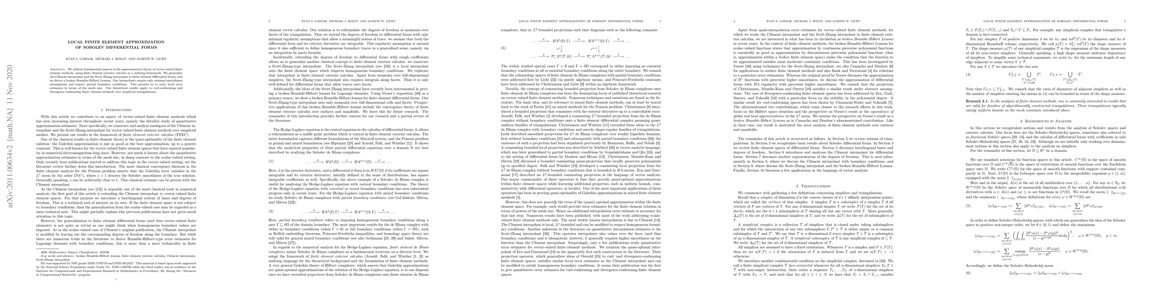 This paper develops local finite element approximations for Sobolev differential forms using finite element exterior calculus, generalizing existing interpolants and deriving a broken Bramble-Hilbert Lemma. The proposed interpolants require minimal smoothness and respect partial boundary conditions, enabling local error estimates based on mesh size.