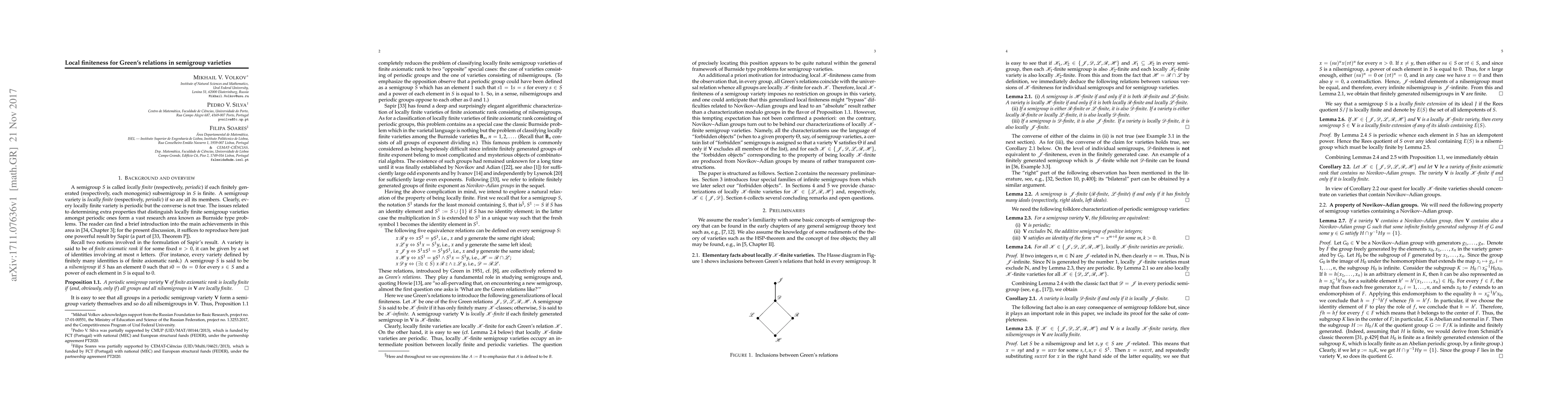 Summary: The paper characterizes locally K-finite semigroup varieties of finite axiomatic rank using "forbidden objects," where K represents any of Green's relations, indicating that every finitely generated semigroup in these varieties has only a finite number of K-classes. This characterization is achieved through the identification of specific prohibited structures within the varieties.