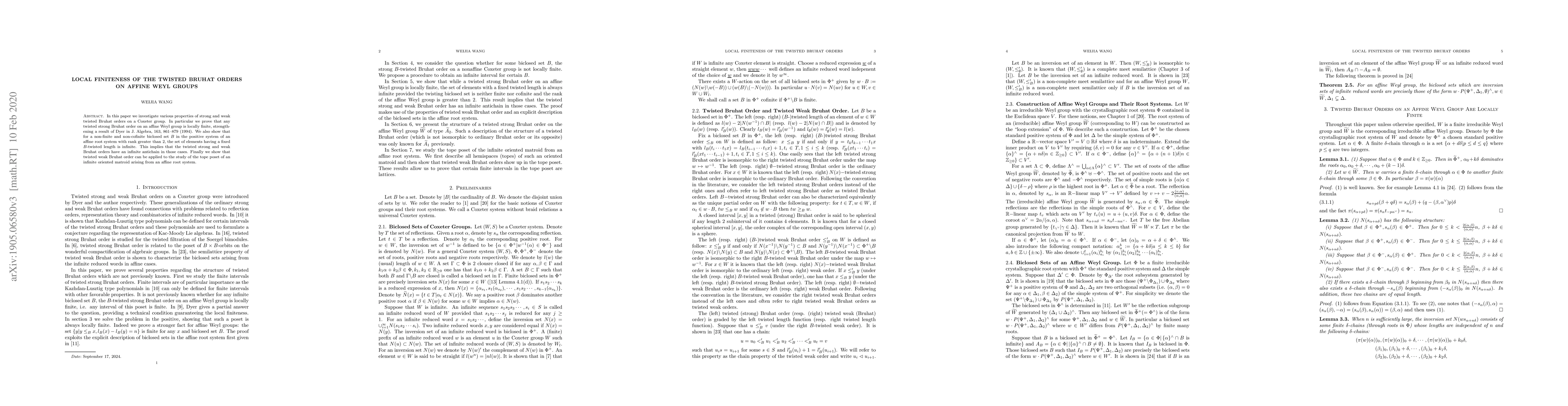 In this paper, we investigate various properties of strong and weak twisted Bruhat orders on a Coxeter group. In particular, we prove that any twisted strong Bruhat order on an affine Weyl group is locally finite, strengthening a result of Dyer in J. Algebra, 163, 861--879 (1994). We also show that for a non-finite and non-cofinite biclosed set $B$ in the positive system of an affine root system with rank greater than 2, the set of elements having a fixed $B$-twisted length is infinite. This implies that the twisted strong and weak Bruhat orders have an infinite antichain in those cases. Finally, we show that twisted weak Bruhat order can be applied to the study of the tope poset of an infinite oriented matroid arising from an affine root system.