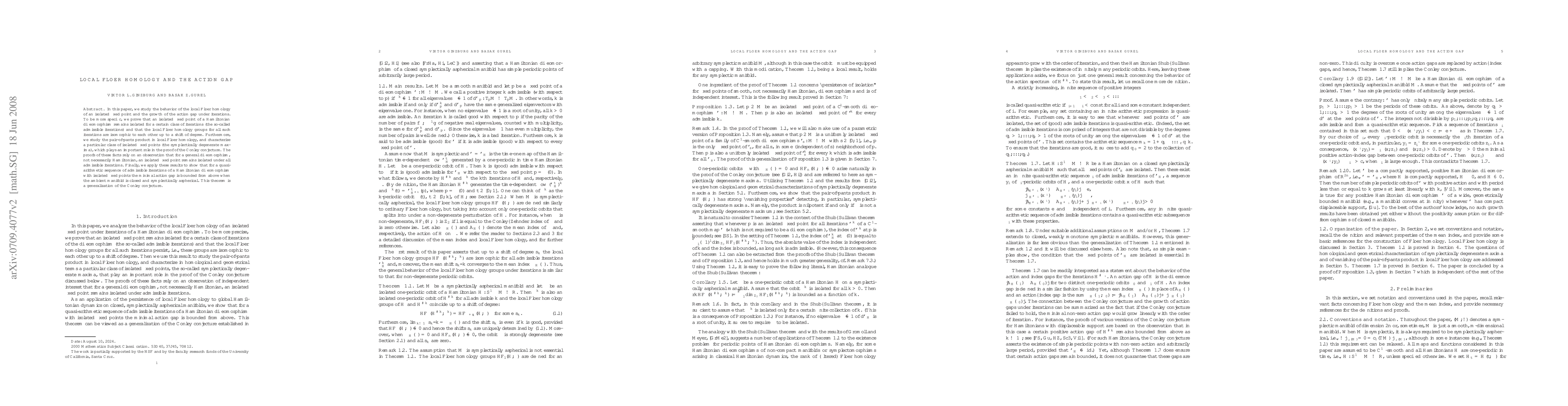 This paper investigates the local Floer homology of isolated fixed points in Hamiltonian diffeomorphisms, proving that such points remain isolated under admissible iterations and that their local Floer homology groups are isomorphic up to a degree shift. It also characterizes symplectically degenerate maxima and proves a generalization of the Conley conjecture, showing bounded minimal action gaps in quasi-arithmetic sequences of admissible iterations.